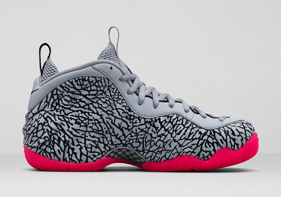La Air Foamposite Wolf Grey/Black/Hyper Pink est un véritable ovni. A l’instar de la Air Jordan 5 3Lab5, elle est intégralement recouverte par motif éléphant. Pour couronner le tout, la basket dispose d’une semelle extérieure rose. Encore une Foamposite qui va enflammer les débats…. En vente (220€) au Nike Store.fr : voir la paire.