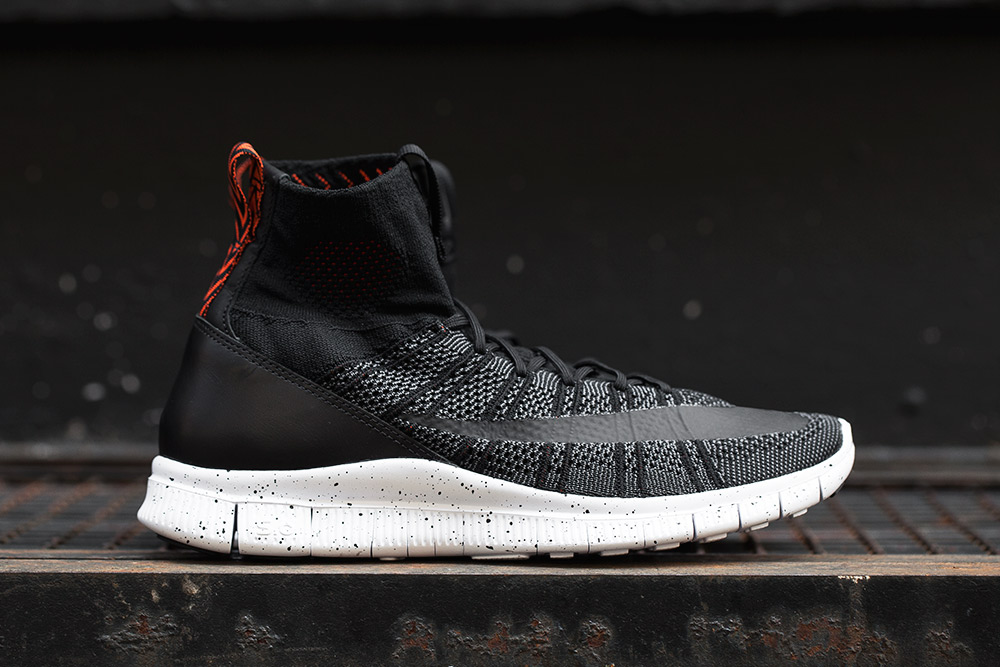 J’ai beau épluché les détails mais je ne vois quasiment aucune différence entre cette nouvelle Nike Free Mercurial Superfly et la HTM (2014). Si ce n’est les touches d’orange et les taches sur la semelle, nous avons affaire au même modèle. Cela tombe plutôt bien car la basket qui porte le sceau ‘Hiroshi Tinker Mark’ se monnaie très cher aujourd’hui. En vente (200 euros) le jeudi 28 avril au Nike Store.fr (à partir de 9 heures).