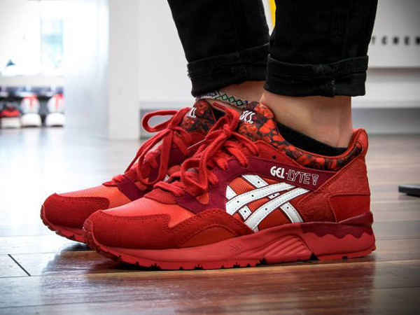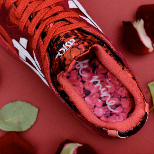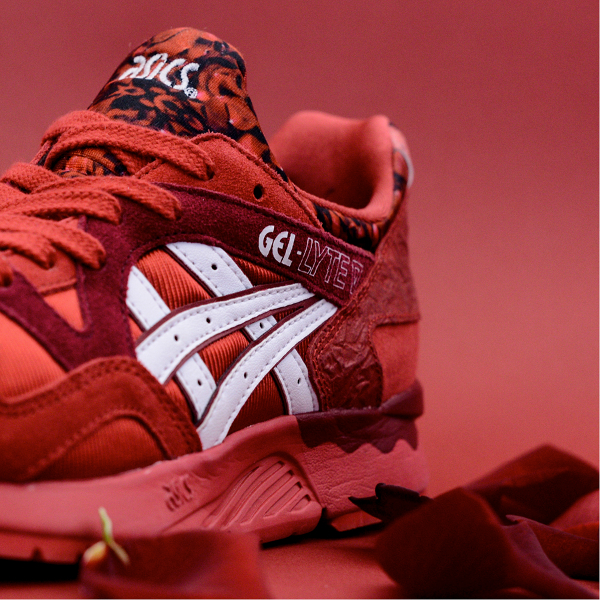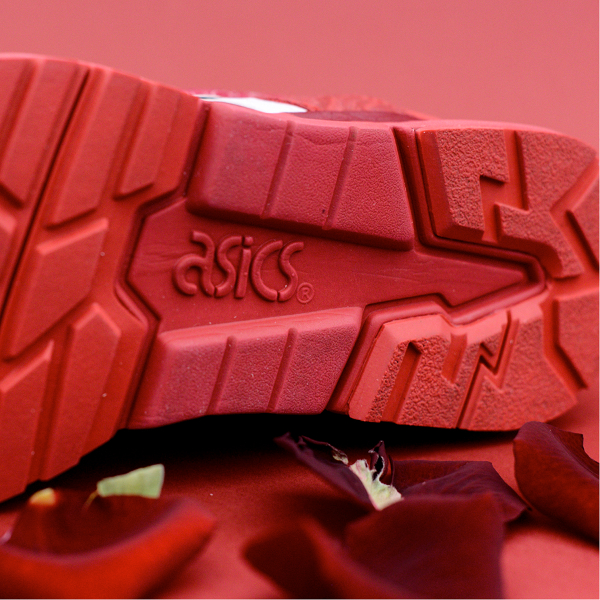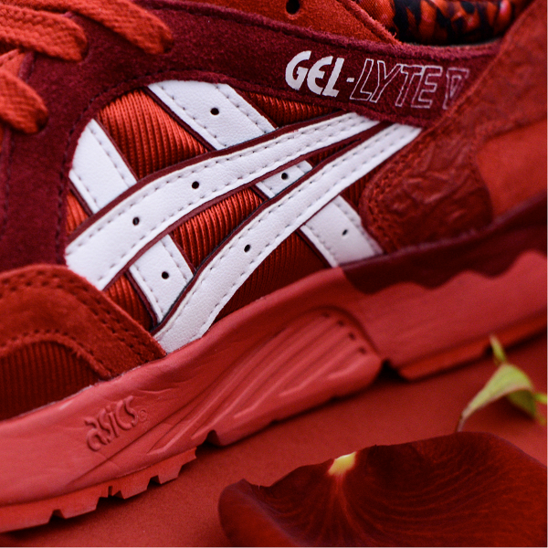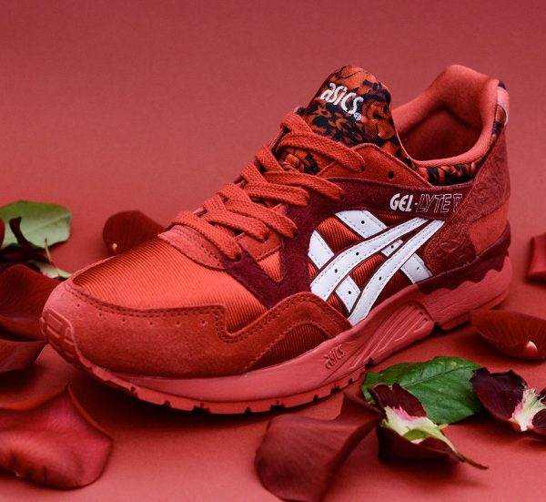 Vous trouvez la Asics Gel Lyte 3 ‘Chocolate’ délicieuse ? Dans ce cas, vous avez forcément dû avoir un coup de foudre en découvrant la Gel Lyte V ‘Rose’, l’autre paire du pack Romance. A l’instar des pétales de la fleur, la sneaker arbore un rouge écarlate des plus séduisants. Une exclusivité qui fera mourir les hommes de jalousie.