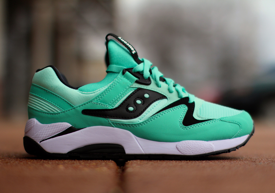 Le vert menthe semble aller parfaitement à toutes les running Saucony. La nouvelle Grid 9000 n’a rien à envier à la Shadow 5000 ‘Minty Fresh’, de la collection Cavity. Leur design n’est pas totalement similaire. Quelques touches de noir viennent créer un joli contraste.