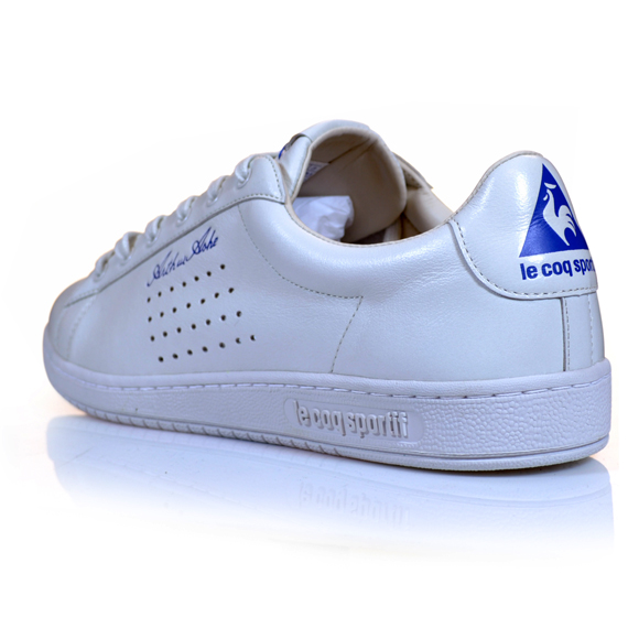 Le Coq Sportif est une marque que je trouve assez en retrait dans le sneaker game. Pourtant, elle était prisée dans les années 70/80. Le Coq Sportif était l’équipementier de Saint Etienne (au moment de la fameuse épopée en coupe d’Europe) et de Yannick Noah au moment de sa victoire à Roland Garros. La marque a tout simplement dû vieillir à sa clientèle. Elle s’est un peu « fossilisée » avec le temps. Si je vais voir mon daron, la marque lui rappellera pleins de souvenirs. Qu’évoque t-elle à la jeune génération d’aujourd’hui ? Pas grand chose je pense…. La marque essaye depuis quelques temps de se refaire une virginité. Le modèle signé Joachim Noah ne va pas me faire dire le contraire. La collaboration avec Hanon Shop marque la volonté du Coq Sportif de retrouver une nouvelle dynamique. Le modèle porté par le tennisman, Arthur Ashe a été ressuscité pour cette association. La boutique et la marque de sneakers misent sur des valeurs comme l’émulation, la performance, le dépassement de soi. Son caractère symbolique ne fait aucun doute. Pourquoi ? Arthur Ashe est le premier noir à avoir remporté l’US Open.