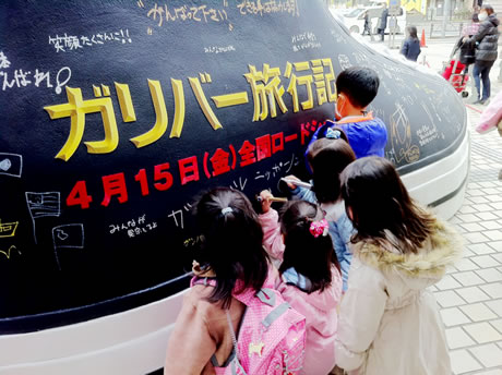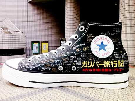 Converse s’est payé une belle pub. Dans le film « Le voyage de Gulliver« , l’acteur Jack Black porte une paire de Converse Chuck Taylor Low. Cette forme de publicité subtile semble s’être développée depuis ces dernières années. Les japonais ont fait encore très fort en installant sur une place une Converse géante. Il faut dire que nos amis nippons ont le goût de la démesure…..
