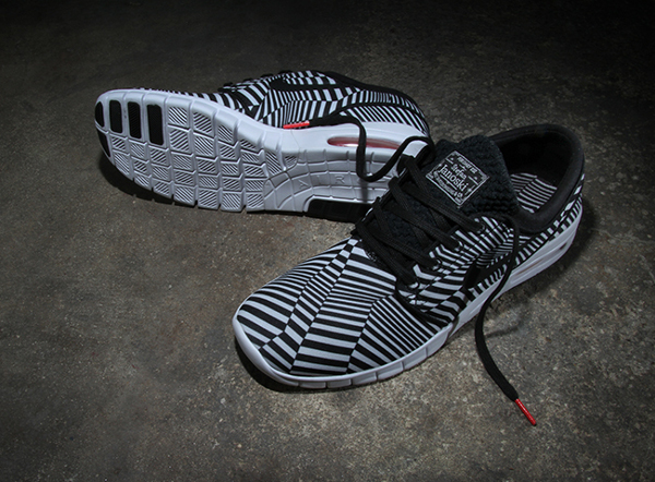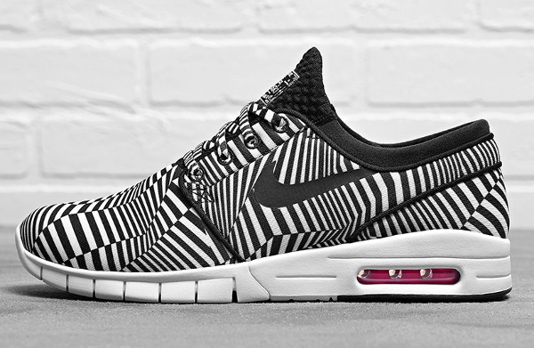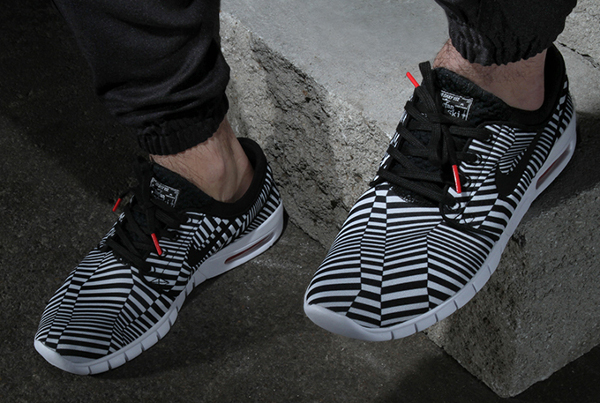 Connu en anglais sous le nom de Razzle Dazzle, le camouflage disruptif était une technique camouflage destinée à protéger un navire des tirs d’artillerie et de torpilles. Il était très utilisé à la fin de la Première Guerre mondiale. Le camouflage Dazzle se compose de motifs entrecroisés en noir et blanc qui créent une illusion d’optique. L’effet que produit la Nike SB Janoski Max Black/White est bluffant. Si on lance un regard insistant sur la sneaker, notre vue finit par être perturbée. Elle est disponible (125 euros) au Nike Store.fr : voir la paire.