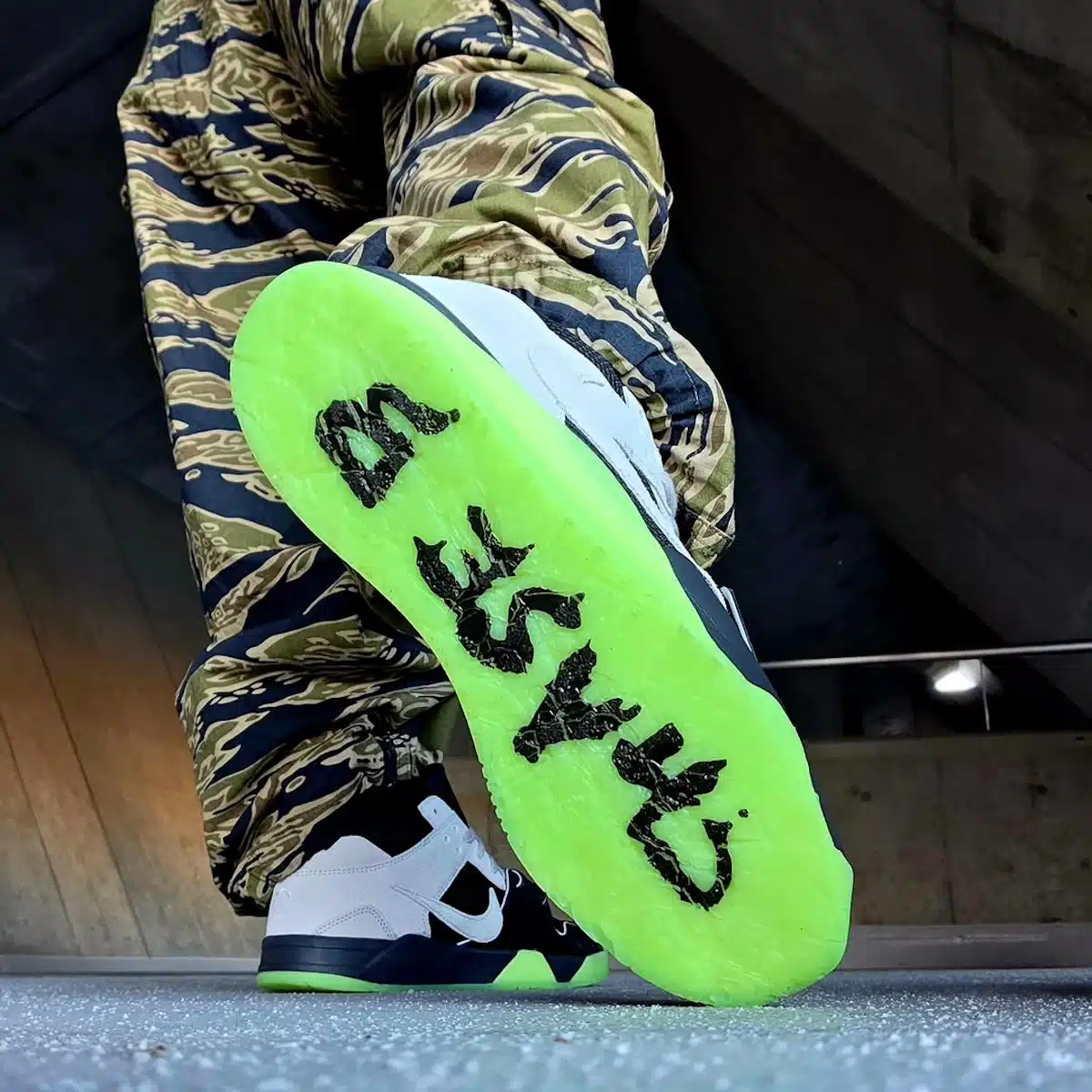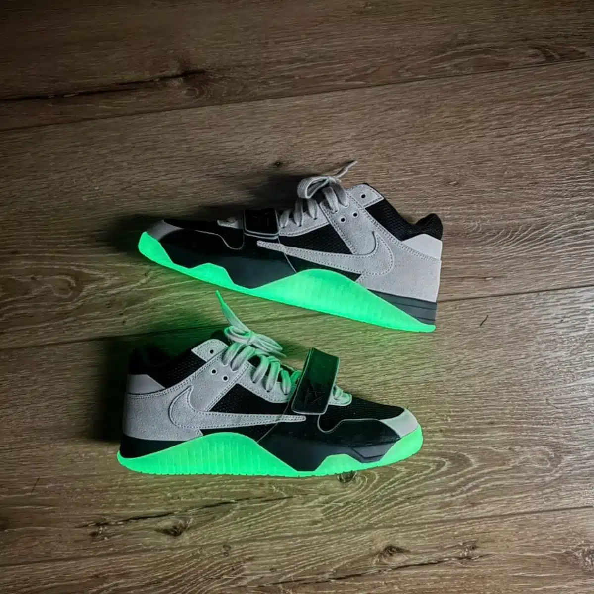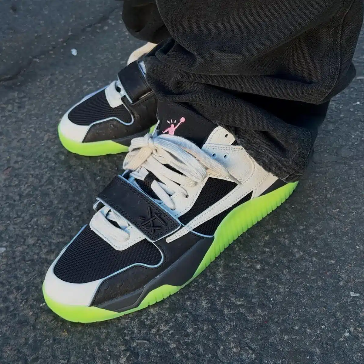 Le mois de décembre 2025 restera gravé dans le marbre. Chase B, DJ historique de Travis, signe sa première collaboration. Ce choix révèle l’esprit du projet : partager avec le cercle proche. Chase B mérite cette reconnaissance. Il construit la bande-son des shows depuis des années. La colorway Black/Night Silver/Illusion Green frappe fort. L’outsole glow in the dark ajoute la touche nocturne qui colle au DJ. La transition officielle vers « CJ1 T-Rexx » survient avec ce drop. Chase B confirme : « Jordan préfère T-Rexx. »