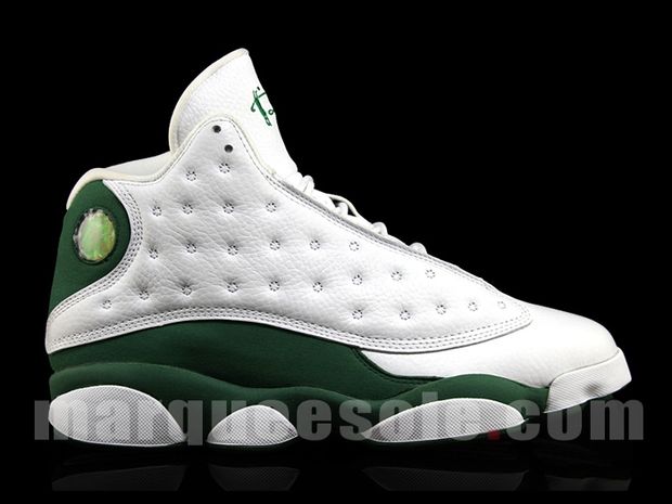 La Air Jordan 13 que portait le joueur des Boston Celtics, Ray Allen, lors d’un match sera dispo en exclusivité à la House Of Hoops en juillet. La paire a été produite à 2561 exemplaires. Il faut donc s’attendre à très peu de Air Jordan 13 Ray Allen Boston Home PE pour la France. Je trouve cette sneaker plutôt sympa….  C’est toujours un plaisir de retrouver ce modèle.