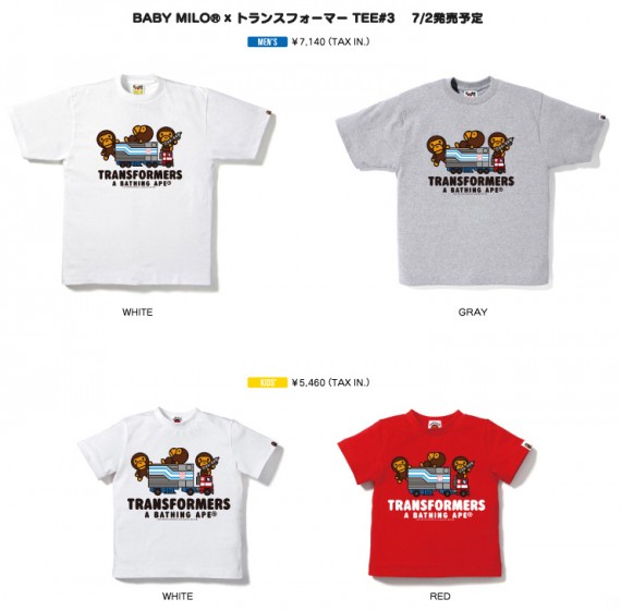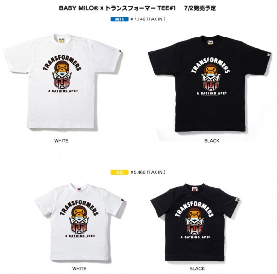La commercialisation de la collection Bape x Transformers se fera en 2 temps. La 1ère partie sera dispo à partir du 2 juillet. Pour l’autre partie (des tee shirts exclusifs et le toy), il faudra attendra le 23 juillet.