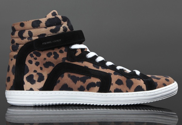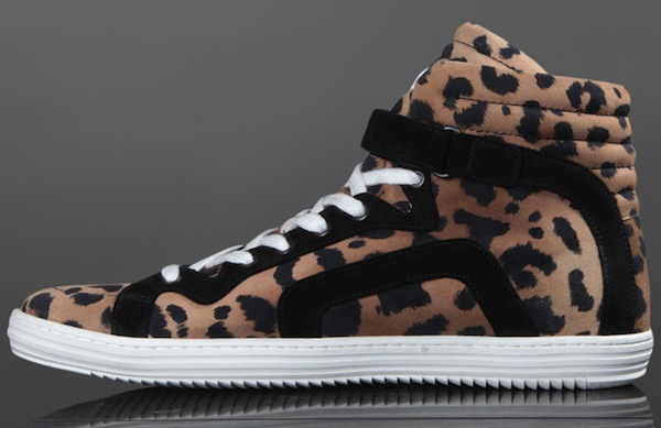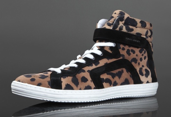 Les liens entre les sneakers « street » et de luxe sont étroits. Les premières influencent énormément les secondes. Il s’agit d’un secret de polichinelle…. Vous n’allez sûrement pas me contredire à la vue de la Pierre Hardy Leopard. Le styliste français a abandonné son délire psychédélique (le modèle Blockorama…) pour créer une sneaker qui se veut très raffinée…. Contrairement à pas mal de paires qui utilisent le print leopard sans une once de créativité, on sent qu’un énorme boulot à été fourni au niveau de la texture. Cette sneaker en daim est tout simplement magnifique d’où son prix mirobolant (600 dollars). Kanye West va adorer….