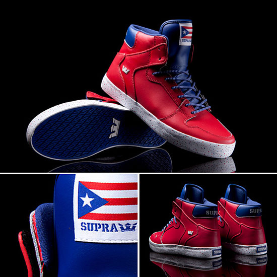 Les drapeaux des pays du monde inspirent pas mal des designers de sneakers. A ce titre, la Air Force 1 reste à ce jour le modèle proposant le plus de choix dans cette thématique. Si vous suivez bien Sneakers-actus, vous devriez savoir que n’importe quel prétexte sert à la commercialisation de baskets. Le weekend dernier se tenait la parade portoricaine à New York. Supra a senti le bon coup en sortant une paire aux couleurs de ce pays. La paire est plutôt de bonne facture même si elle n’a rien de révolutionnaire. Il reste encore quelques tailles de la Supra Vaider Puerto Rican Day Parade chez Factory 413.