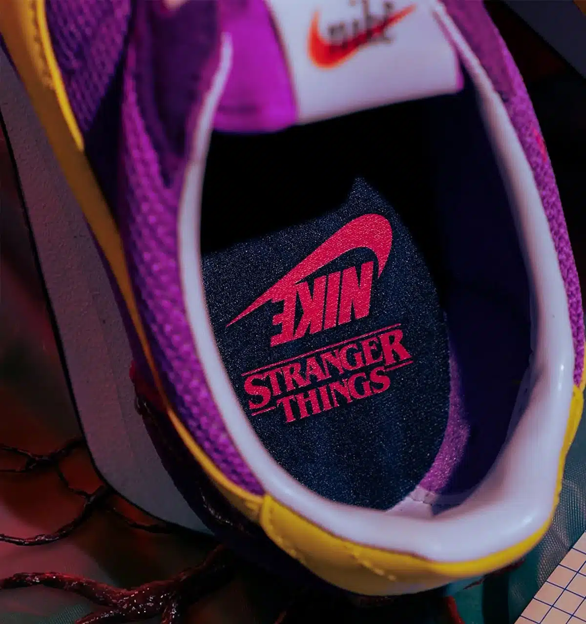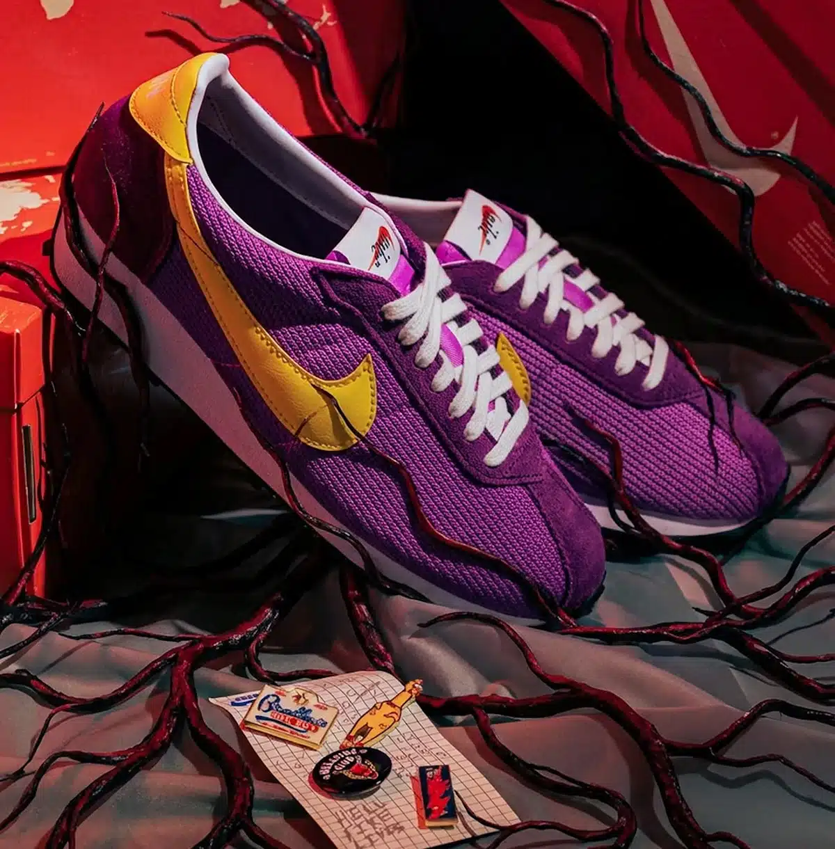La Nike LD-1000 x Stranger Things Erica Sinclair rend hommage au personnage le plus pétillant de Hawkins. Celle qui a balancé « You can’t spell America without Erica ». Fuchsia Dream, Viotech, Opti Yellow. Des couleurs qui exlosent à la rétine. La silhouette rétro nous ramène directement en 1977. Elle ressuscite un modèle important de l’histoire Nike. Une running controversée que Bill Bowerman avait imaginé puis rappelé. L’échec s’est mué en collector. Près de 50 ans plus tard, le modèle revient sous les projecteurs.