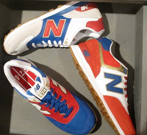 Avec les Jeux Olympiques de Londres 2012 , nous allons être inondés de nouveaux modèles de sneakers. Nike a déjà lancé les hostilités en prévoyant de sortir les Air Jordan 6 & 7 Olympic. New Balance fait une entrée fracassante avec son pack Road To London. La marque de sportwear dispose d’une certaine légitimité dans la mesure où elle produit 70% de ses baskets au Royaume Uni ! Je n’ai pas encore la date de sortie exacte de ces New Balance 574. Il faudra attendre au moins jusqu’au mois de juillet.