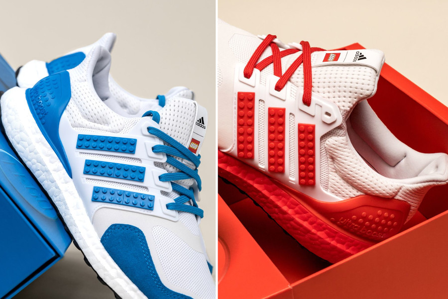 Les Adidas x Lego® UltraBoost DNA 4.0 Colors Pack Blue & Shock Red prennent le relai des ZX 8000 Torsion (en promo chez certains revendeurs). Chaque sneaker s’inspire d’une brique de rangement emboîtable à boutons. La collection démarre avec les coloris bleu et rouge. Elle va vite s’enrichir. On a déploré que les 3 bandes de la Adidas Ultra Boost multicolore n’étaient pas customisable. C’est ce qui faisait le charme d’une Lego Plates. Les Colors ont le même défaut. Les détails 3M reflective atténuent un peu notre déception. En vente au prix de 180€ (160€ les tailles enfant) le jeudi 29 juillet chez Adidas.fr (à minuit) : voir la paire et chez Foot Locker.fr : voir la paire.