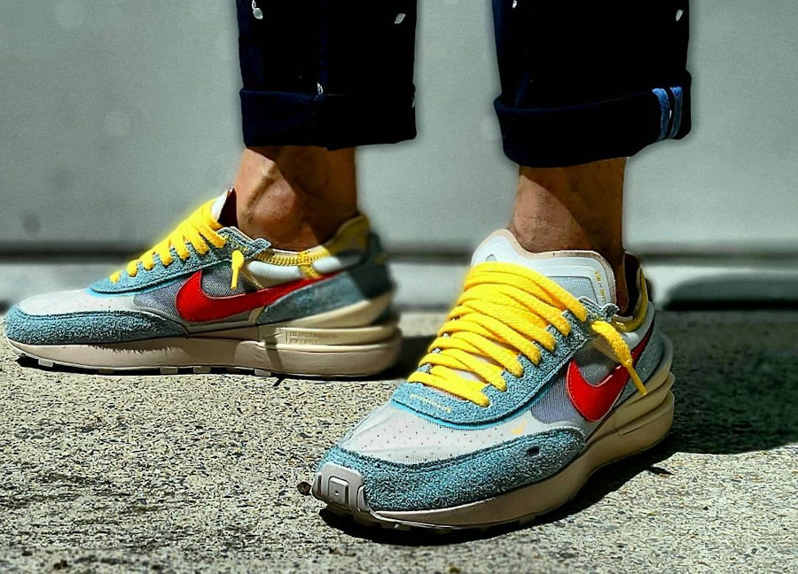 La marque au Swoosh accorde de l’importance à la Waffle One, une des nouveautés de son catalogue lifestyle 2021. Sa présence au sein du programme Nike ID est assez révélateur. La version dérivée de la Sacai x Nike LDWaffle est déjà disponible depuis plusieurs semaines. Les gens s’en donnent à coeur joie. Cela me permet de vous proposer une sélection de sneakers personnalisées. En ce moment, vous avez le choix entre des Nike Waffle 1 by You en mesh transparent ou teinté. D’autres options arriveront dans les semaines à venir. Il y a déjà matière à faire de belles choses. Une petite Bred ou Mars Yard ? A vous de jouer. En vente au prix de 129.99€ au Nike Store.fr : voir la paire.