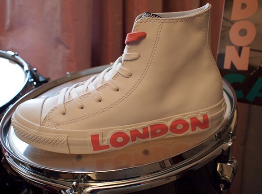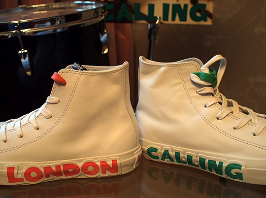 Converse a exploité le thème de la couverture de l’album de The Clash de manière assez judicieuse. Le titre de cette opus « London Calling » (1979) figure sur la semelle de chaque paire.