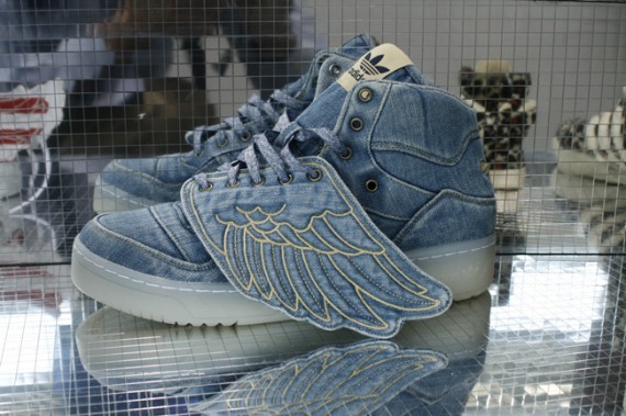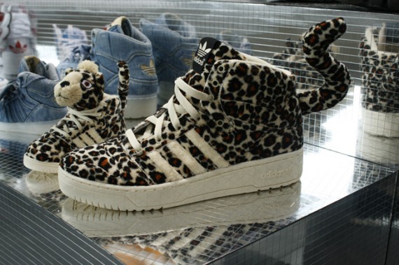 Jeremy Scott est à l’univers de la sneaker ce que Tim Burton est au cinéma. Si vous êtes un conformiste, allergique à l’innovation, ces créations risquent de vous faire fuir…. Ces photos nous donnent un avant goût des sneakers estampillées JS que vous retrouverez dans vos boutiques favorites en 2012. Même si l’originalité de certains modèles ne fait aucun doute (comme la Adidas Originals Jeremy Scott Wings en denim), le styliste ne parvient plus à me surprendre. La magie n’opère plus vraiment. Ok, ses modèles sont sympas, amusants. Cependant, à force de trop vouloir surprendre, Jeremy Scott ne nous surprend plus. C’est le sentiment que j’éprouve en voyant cette collection JS printemps été 2012. Certains crieront au génie tandis que d’autres au n’importe quoi avec la Adidas Originals avec la queue de léopard… Le débat ne fait que commencer entre les anti et les pro Jeremy Scott…..