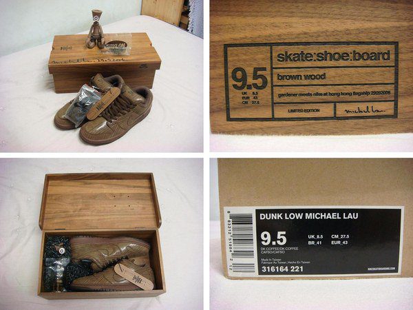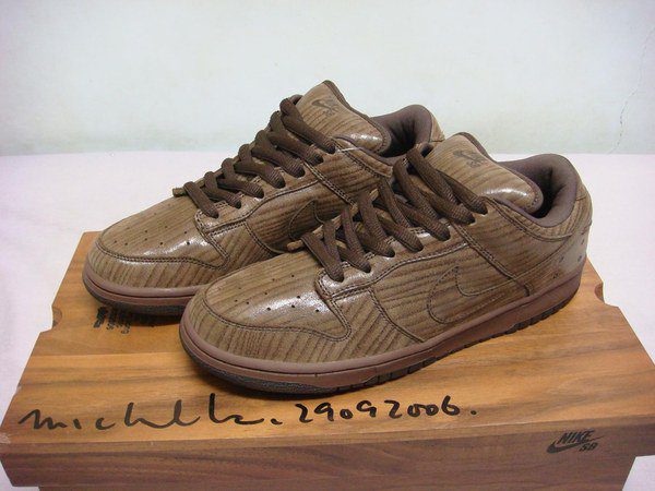 Cette paire a été imaginée par l’artiste Michael Lau. Elle est sortie en 2006 à 106 exemplaires. La sneaker est vendue avec une boîte en bois et un toy. Son prix ? La Nike Dunk Low Michael Lau est cotée à plus de 1000 euros.