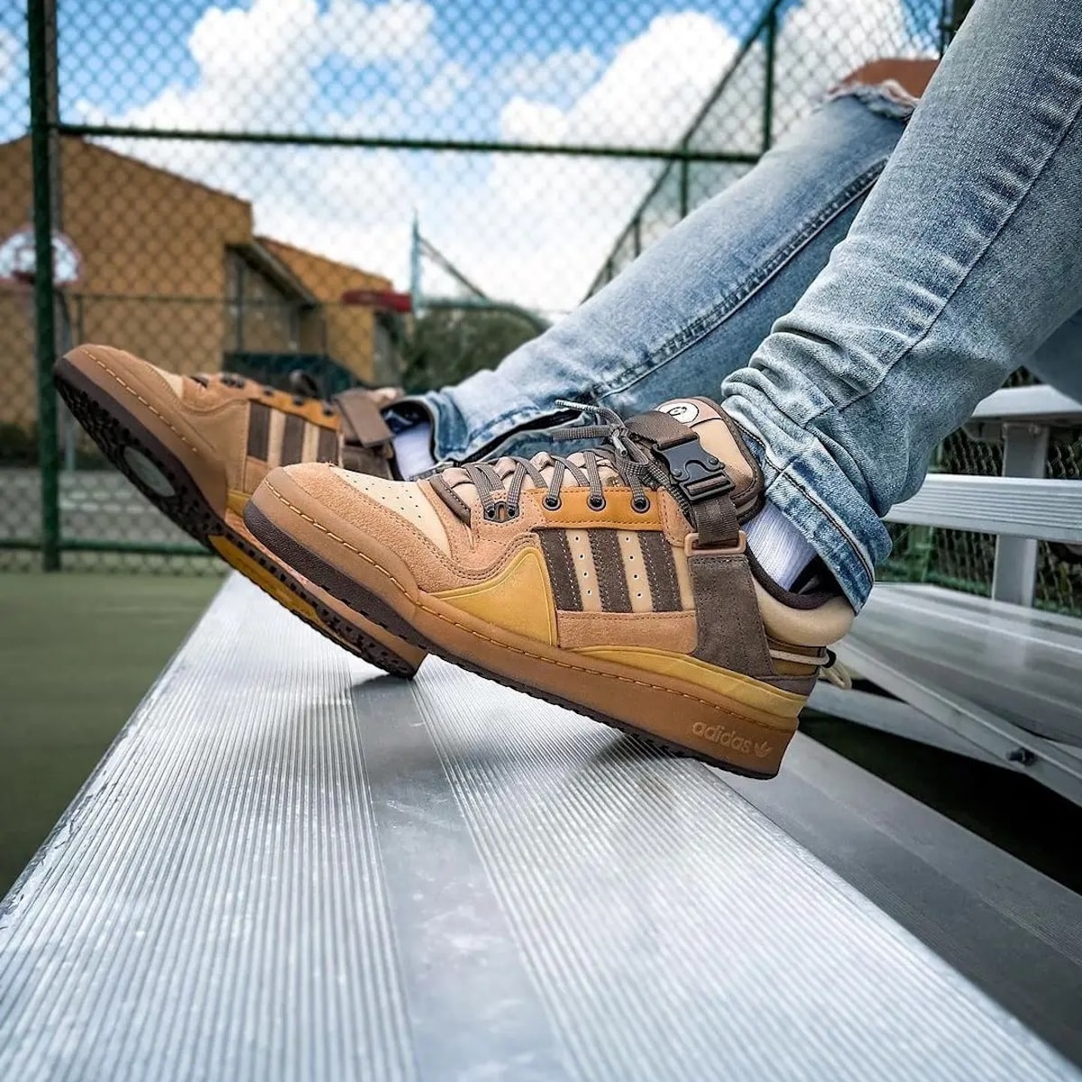 Bad Bunny sort The First Café. Une adidas Forum Buckle Low couleur expresso. Le ton marron évoque son rituel matinal à Porto Rico. Cette tasse de café qui lance chaque journée. Le drop tombe un jeudi matin. Dix minutes plus tard, tout est parti. Sur StockX, les prix grimpent à 600 euros. Les réseaux sociaux explosent. Personne n’avait vu venir le coup.