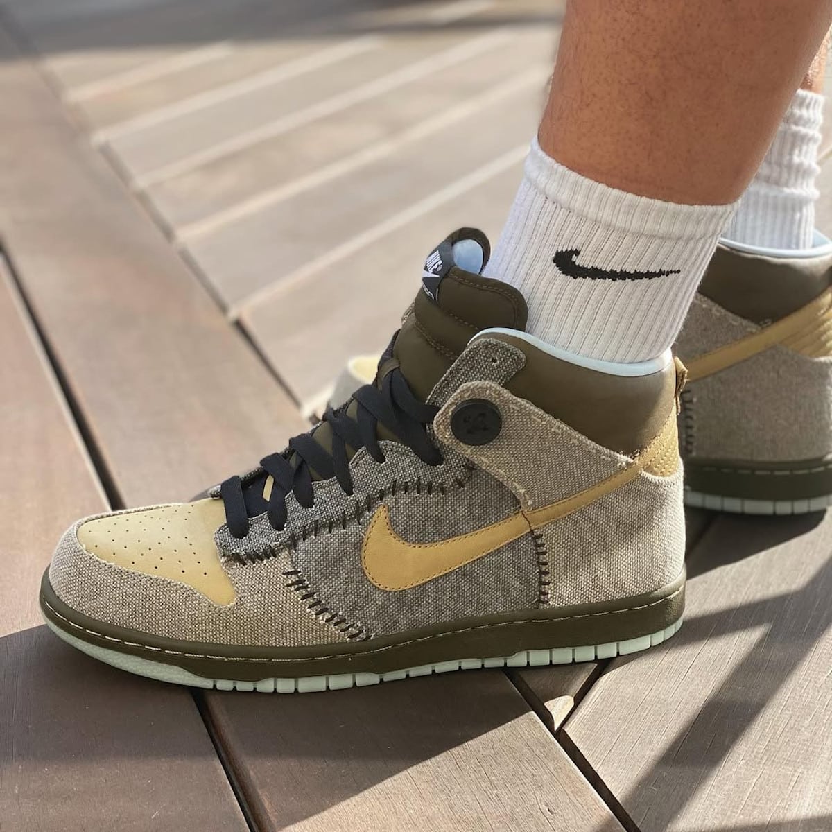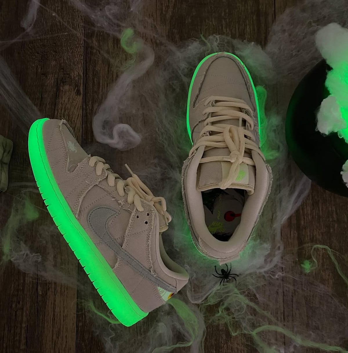 Halloween offre l’opportunité à la marque au Swoosh de laisser libre cours à son imagination. La Nike SB Dunk Low Mummy en est la parfaite illustration. Des bandelettes en canvas superposées. Cousues façon momie égyptienne. Du beige vieilli partout. Vous pouvez les arracher. Des motifs cachés apparaissent dessous. L’œil d’Horus brille sur la languette. Des yeux rouges vous fixent depuis le talon. La semelle phosphorescente complète le tableau. Du grand art.