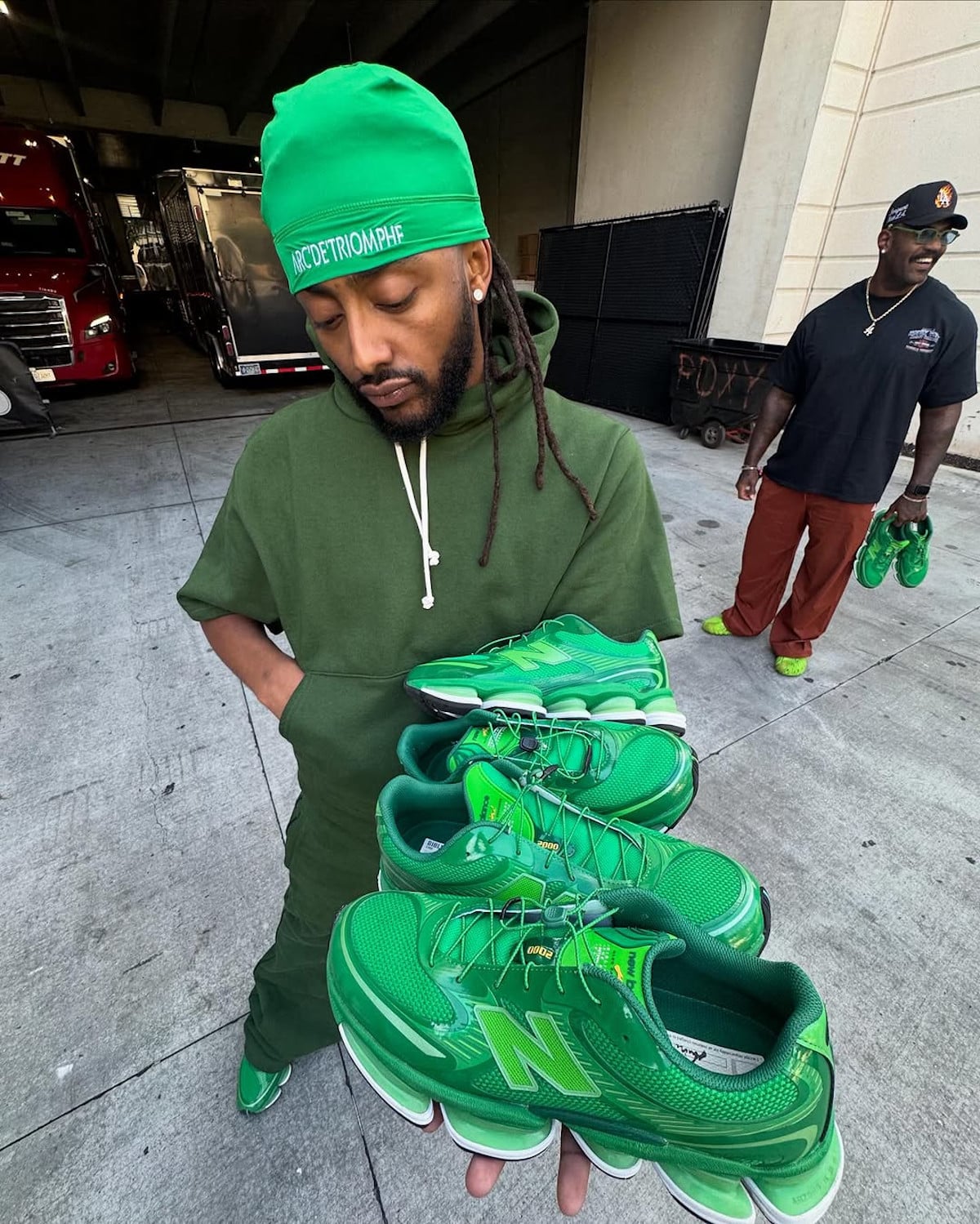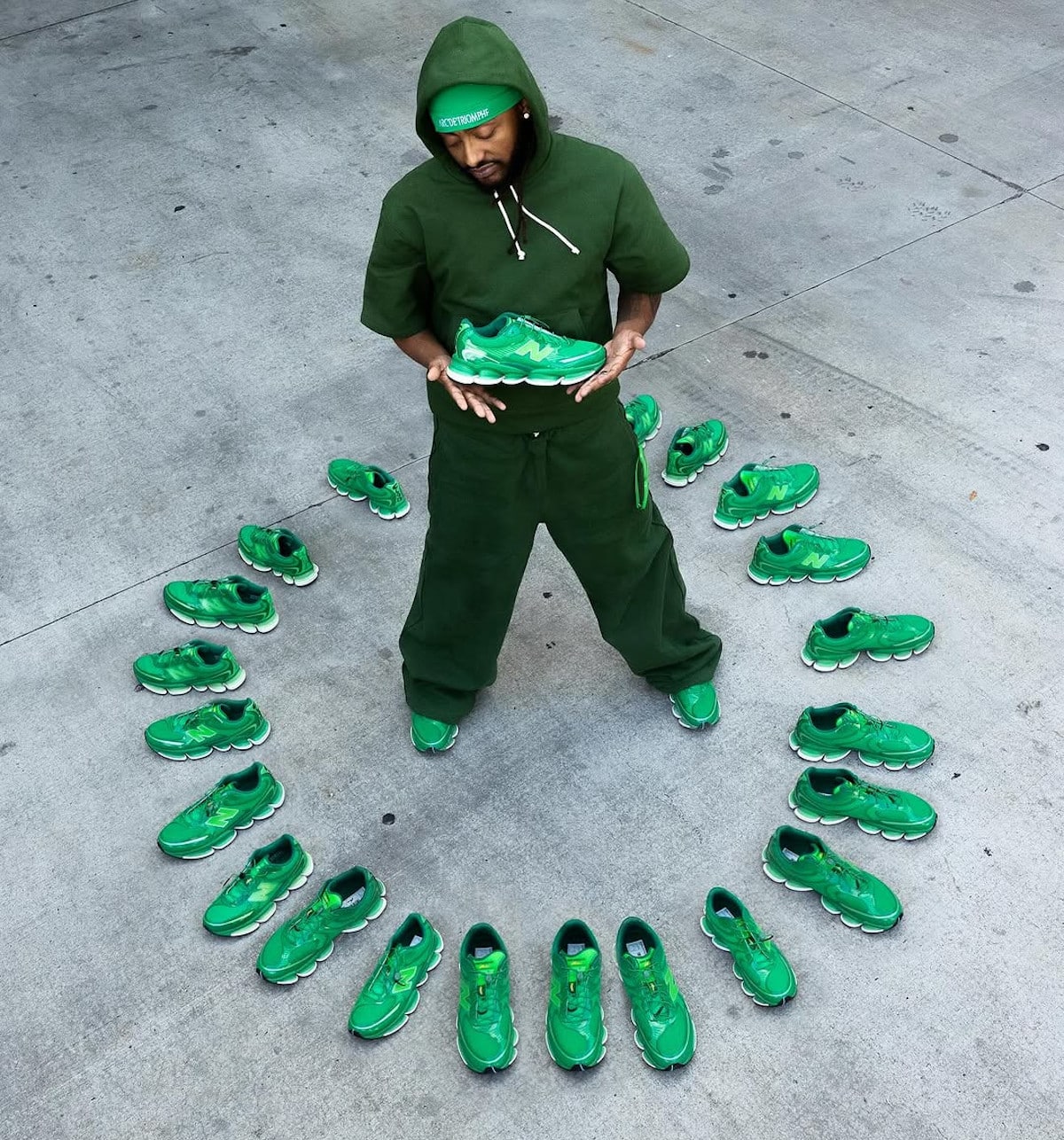 « ¿Dónde está la biblioteca? » Je ne sais pas si vous avez toujours en tête vos cours d’espagnol. Mais Aminé, lui, il s’en souvient aussi. Et l’Américain a décidé d’en faire une paire de sneakers. La Aminé x New Balance ABZORB 2000 Biblioteca, une paire glow in the dark, qui se décline un vert matcha est une belle piqûre de rappel.