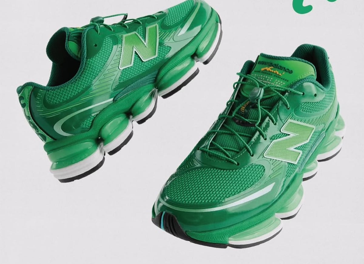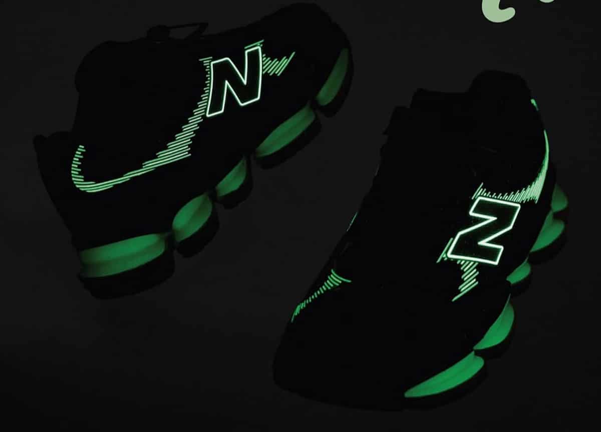 La NB Abzorb 2000 mélange plusieurs nuances de vert fluo sur une tige en mesh. Le cuir verni ajoute des reflets brillants. Le meilleur ? Des zones phosphorescentes qui brillent dans l’obscurité. La semelle intermédiaire en blanc et noir calme le jeu. Les pods ABZORB SBS transparents assurent l’amorti. Les détails racontent Portland. La semelle intérieure reproduit une carte de bibliothèque Club Banana. La languette affiche « Rendez vos livres à temps« . Le packaging imite un dépôt de livres, ces bornes rouges devant les bibliothèques.