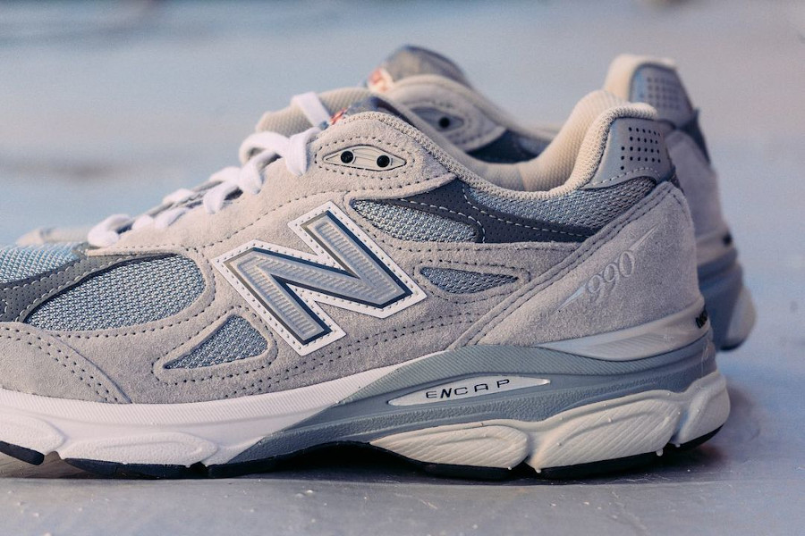 La collection « Made in England » s’est illustrée avec le lancement du pack de New Balance 991 signée Stray Rats. La firme de Boston n’oublie pas de faire briller son label reposant sur une production aux Etats-Unis. La running à l’amorti Encap qui fêtera bientôt ses 10 ans sonne la charge. La New Balance M990GY3 Grey White est le successeur tout désigné d’une M990GL3. Les différences entre les 2 chaussures en daim premium sont mimines. On pourrait dire la même chose de la 990V3 40th Anniversary. Seule la petite étiquette rouge permet de bien les distinguer. Est-ce le dernier coloris de l’année ? Non, la running de 1992 reviendra à la fin du mois pour un dernier tour de piste.