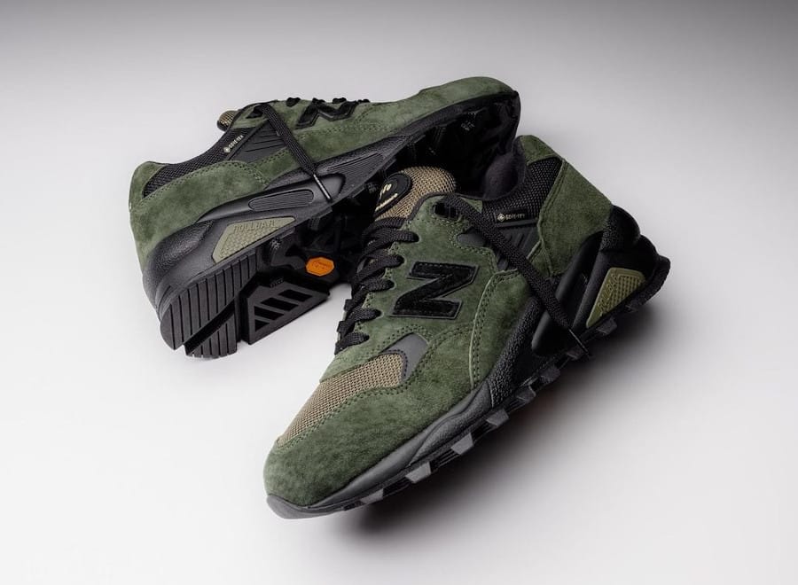 - Couleur vert kaki : la New Balance 580 Kombu est revêtue d’un suède vert kaki, lui donnant un look militaire.
