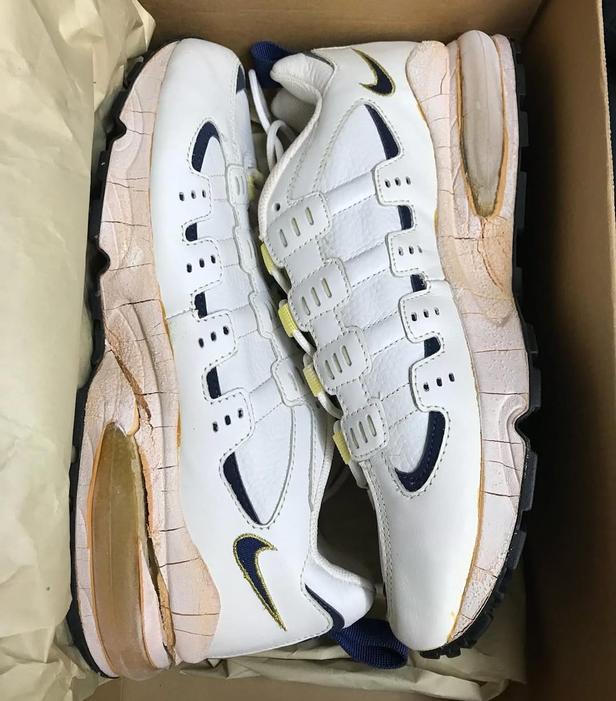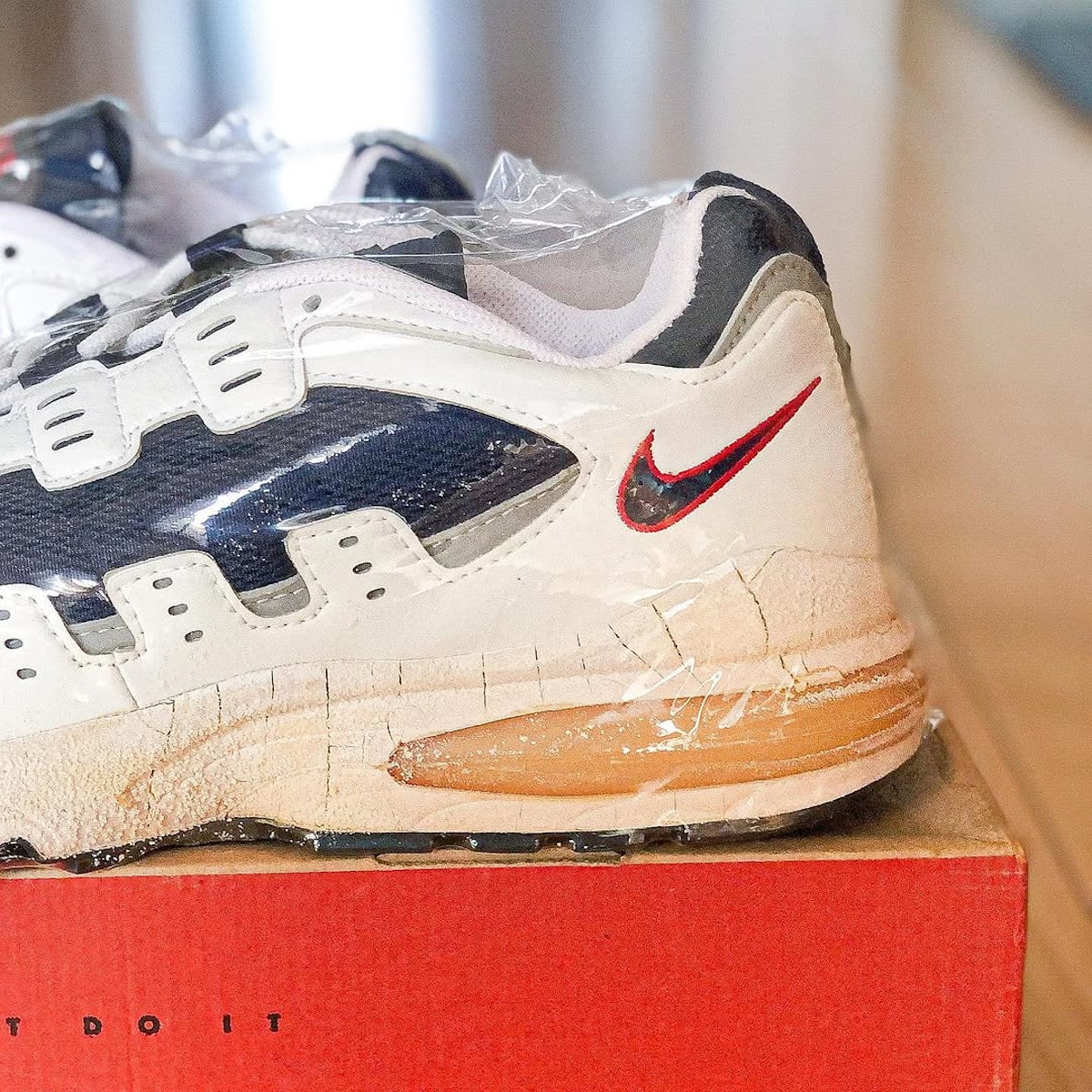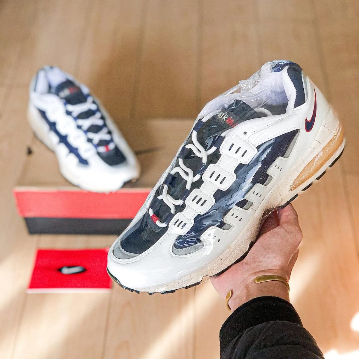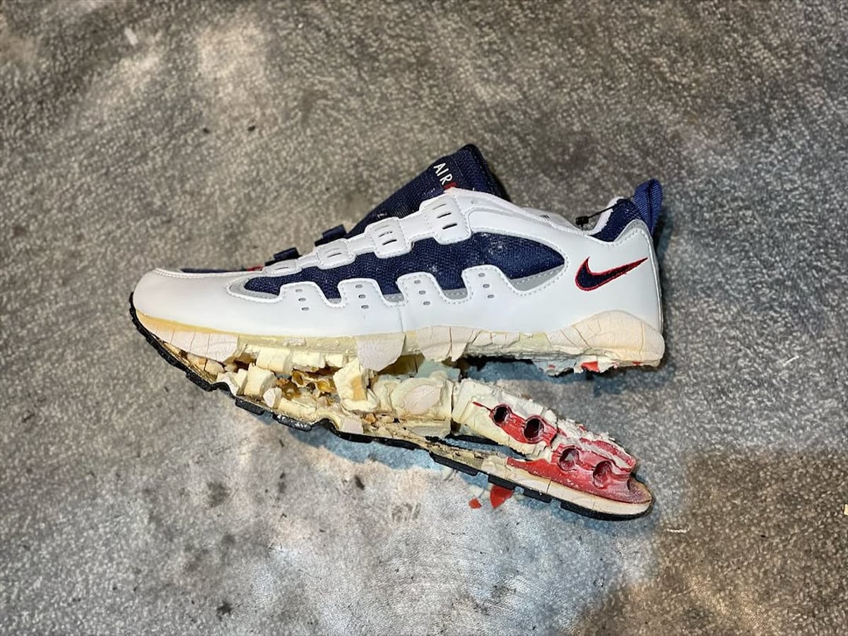 Petite mise en garde cependant : après trois décennies, la bulle d’air peut éclater et la semelle se déliter comme du vieux gruyère. Mais il existe une solution : le soleswap. Remplace simplement la semelle par celle d’une Air Max 90, et le tour est joué.