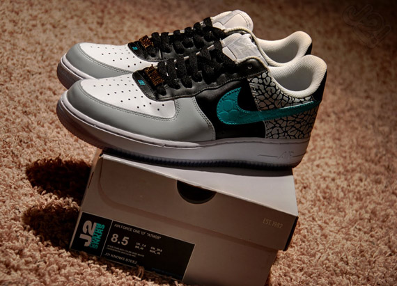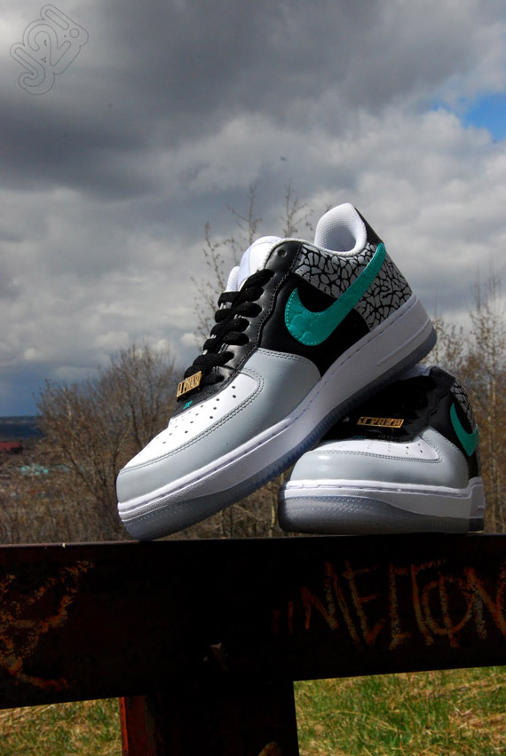 Cette Nike Air Force 1 s’inspire de la fameuse Air Max 1 Atmos Elephant Print. Le pari est assez osé quand on sait qu’elle est l’une des plus jolies AM1 de tous les temps. J2 a réussi à relever ce défi ! Cette sneaker customisée demeure fidèle à l’originale à un détail près. Il a ajouté une semelle translucide (ce qui ne nuit pas du tout à la qualité de son travail).
