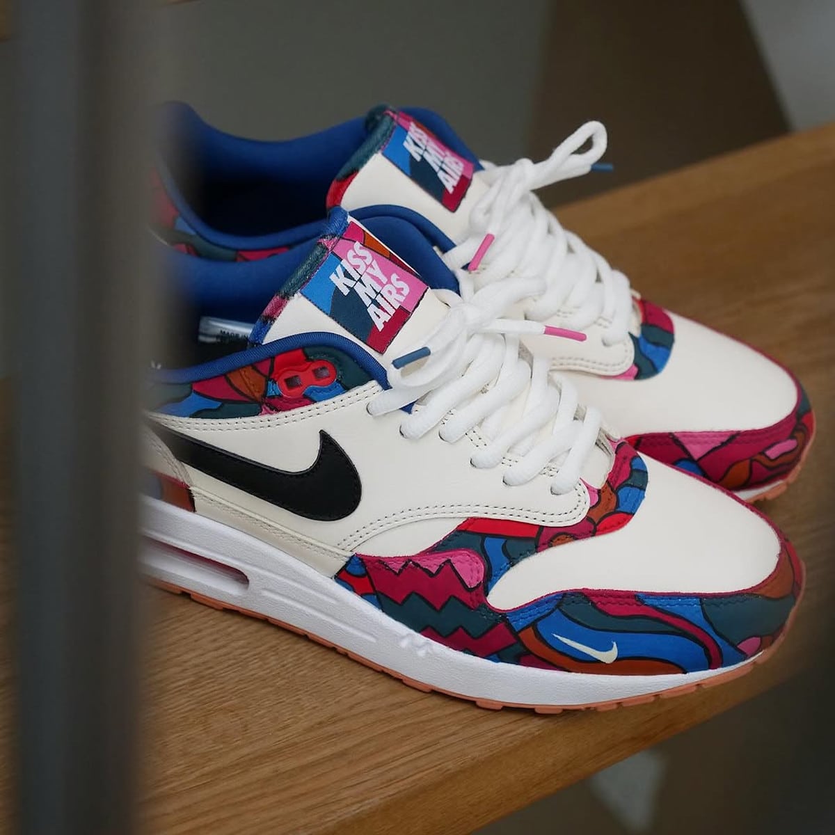 Non, c’est une paire customisée. BOSZ SNKRS a peint une AM1 blanche à la main. Nike et Parra n’ont jamais sorti ce modèle officiellement.