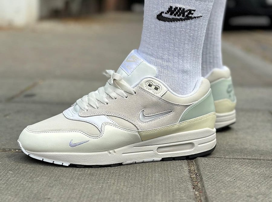 Les gens commencent à s’impatienter. La Nike Air Max 1 PRM Hangul Day est sortie depuis près de 2 mois. Toujours aucune annonce pour la France concernant la plus coréenne des AM87. Tout porte à croire que l’édition spéciale est réservée à l’Asie. Compte tenu de son concept, cela n’aurait rien d’incohérent. En effet, la chaussure munie d’un Jewel Swoosh transparent met à l’honneur l’alphabet coréen, inventé par Sejong le Grand au 15ème siècle. Inutile de préciser la signification du 나이키 à l’arrière. En Corée du Sud, le 9 octobre est le Jour du Hangeul. Cela montre son importance au pays du Matin calme. La running de Tinker Hatfield s’est mise à la hauteur de l’évènement en revêtant du daim premium blanc sommet et du cuir couleur beige crème. Chose rare, la présence d’un système de laçage de type toggle. Le surnom « No Bubble » est loin d’être usurpé. A l’image des Cactus Corp de Travis Scott, les bulles sont cachées.