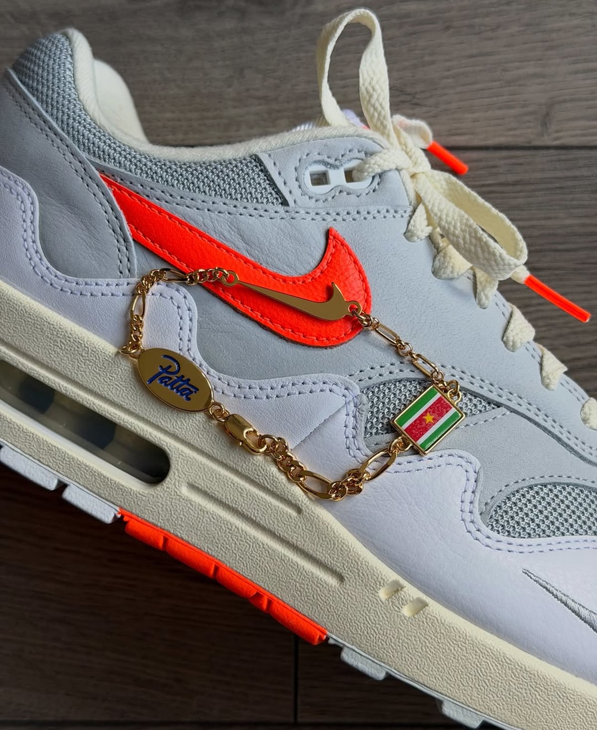 Ce que j’aime dans ce choix, c’est l’aveu public des fondateurs : ce coloris a été pensé pour être « démocratique », pour se porter avec n’importe quoi. Le bracelet aux couleurs du drapeau surinamais glissé dans chaque boîte te rappelle que le storytelling Patta dépasse largement la chaussure. La culture et la sneaker ne font qu’un. Bien sûr que la Air Max 1 se suffit à elle même. Toutefois, seule une boutique indépendante avec des gars qui connaissent la rue peut créer une telle connexion entre une marque, un modèle et le public.