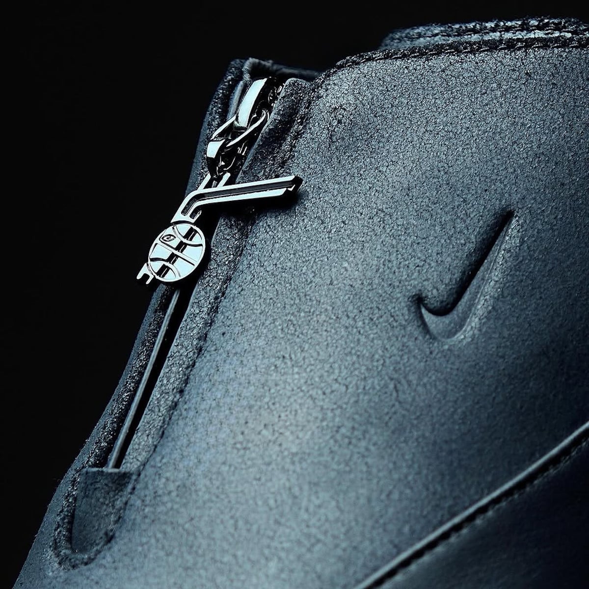 Nike teste ce terrain depuis un bail. La Wardour Max 1 essayait déjà de jouer sur plusieurs tableaux. Mais la RK61 pousse le concept plus loin. Tout le dessus est en cuir. Vraiment tout. Pas de mesh qui respire, pas de zones techniques apparentes. Juste du cuir travaillé.