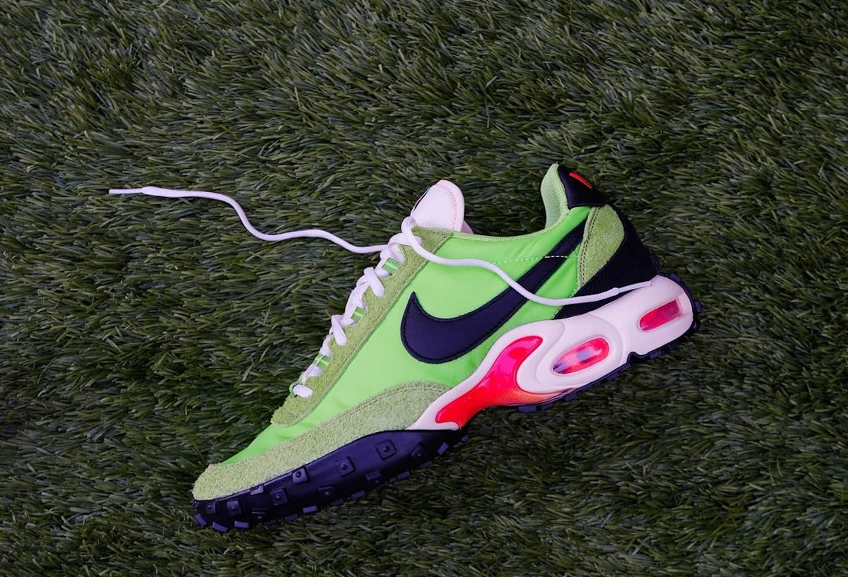Quel est l’intérêt de ce modèle ? Comme plusieurs Air Max hybrides avant elle, la Nike TN Waffle Racer Action Green ne sera pas épargnées par les critiques. Les 2 paires ne sont pas compatibles à 100%… La greffe peut apparaître contre-nature. La nouvelle basket expérimentale cible avant tout les collectionneurs de Nike Tuned 1 et ceux qui veulent sortir des sentiers battus. Sa puissance réside dans la volonté de Nike de faire cohabiter les 2 identités. Sa semelle hybride dispose du talon des AMP et de sa voûte plantaire en forme de queue de baleine. La partie avant de la semelle d’usure conserve l’outsole des Waffle Racer.