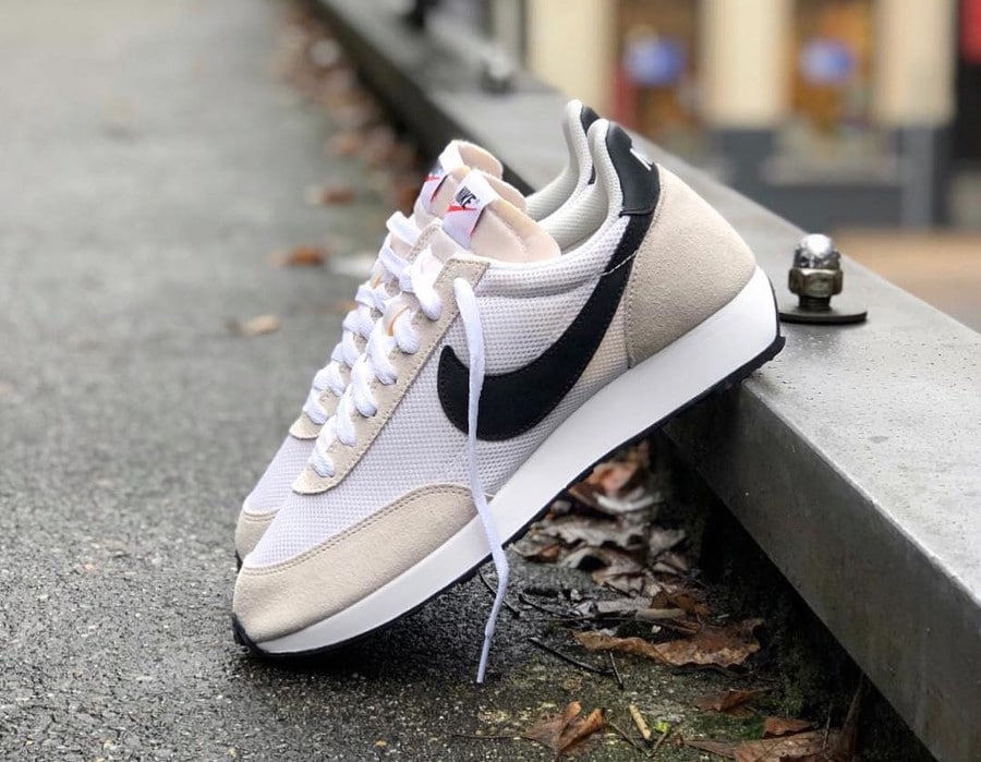 La running dont l’histoire a démarré sur le bitume d’Honolulu en 1978 refait parler d’elle grâce à des colorways inédits. Dans ce nouvelle arrivage figure la Nike Air Tailwind 79 White Black Phantom. La basket au style vintage fait dans le minimalisme. La Nike rétro combine du mesh et du suède blanc cassé. La teinte claire permet au Swoosh en cuir noir de ressortir. On aurait pas affaire à une véritable Tailwind 79 sans l’aspect usée de sa languette. A l’image d’une Nike Blazer Mid VTNG, la mousse censée être cachée apparaît au grand jour. Sans être géniale, la chaussure pour homme passe crème. La Air Tailwind 79 White Black est disponible au prix de 90€ au Nike Store.fr.