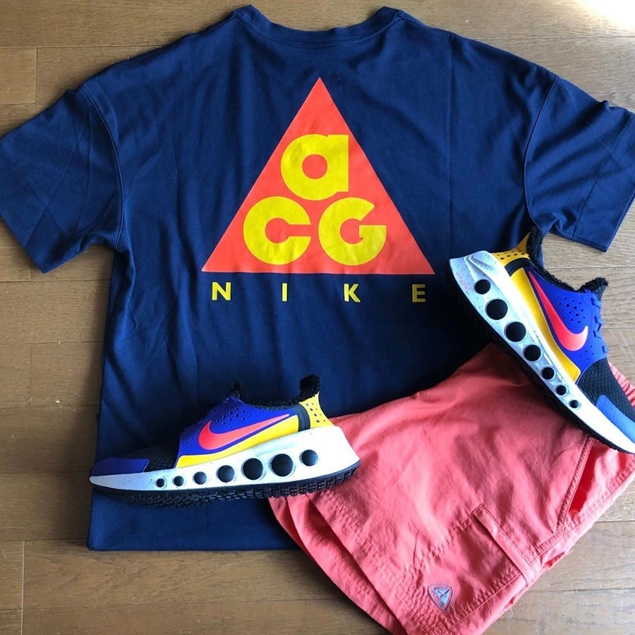Les fans de la collection All Condition Gear ne pourront rester impassibles devant la Nike CruzrOne ‘ACG Terra’ Fusion Violet Bright Crimson. Ce mélange de violet, de rose, de noir et de jaune, lui vient d’une chaussure de randonnée de 1991. Celle-ci possède la particularité d’avoir une semelle extérieure s’inspirant du pneu des vélos de montagne. Récemment, une Nike SB Dunk Low Pro a aussi réinterprété ce colorway du début des années. La running créée par Tinker Hatfield l’imite à tour et s’en sort très bien. En vente au prix de 150€ au Nike Store.fr : voir la paire.