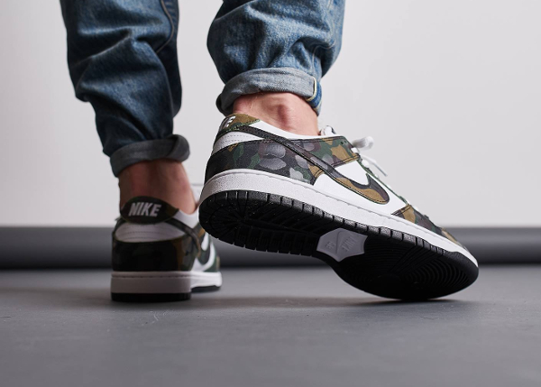 Depuis la fin 2016, l’actualité de la Nike Dunk Skateboarding est bien chargée. Le pack Box qui revisite les boîtes des années 2000, une grosse collaboration…. Les aficionados du modèle sont servis. Cette fois-ci, la sneaker à l’amorti Zoom Air revient toute vêtue de camouflage. Un imprimé militaire qui fait des ravages puisque la Camo Green était quasiment en rupture de stock il y a quelques jours. Profitez du réassort avant qu’elle ne soit définitivement plus disponible. En vente (95€) au Nike Store.fr : voir la paire.