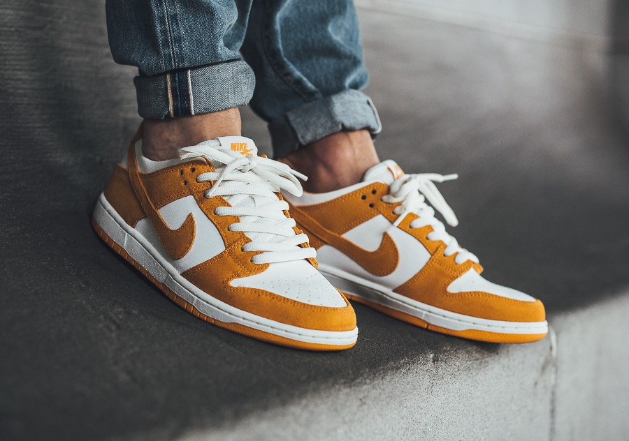 Trouvez-vous que la Nike Dunk Low Pro SB ‘Circuit Orange’ est une déclinaison en daim de la Syracuse, un des modèles emblématiques de la collection Be True To Your School ? Certes elle affiche une nuance orangée mais dans un ton différent. Au jeu des ressemblances, la basket de la gamme Skateboarding se rapproche davantage d’une Atmos x Air Max 1 ‘Curry’. D’après des rumeurs, l’édition limitée de 2003 pourrait bien revenir l’an prochain mais sous une nouvelle forme.
