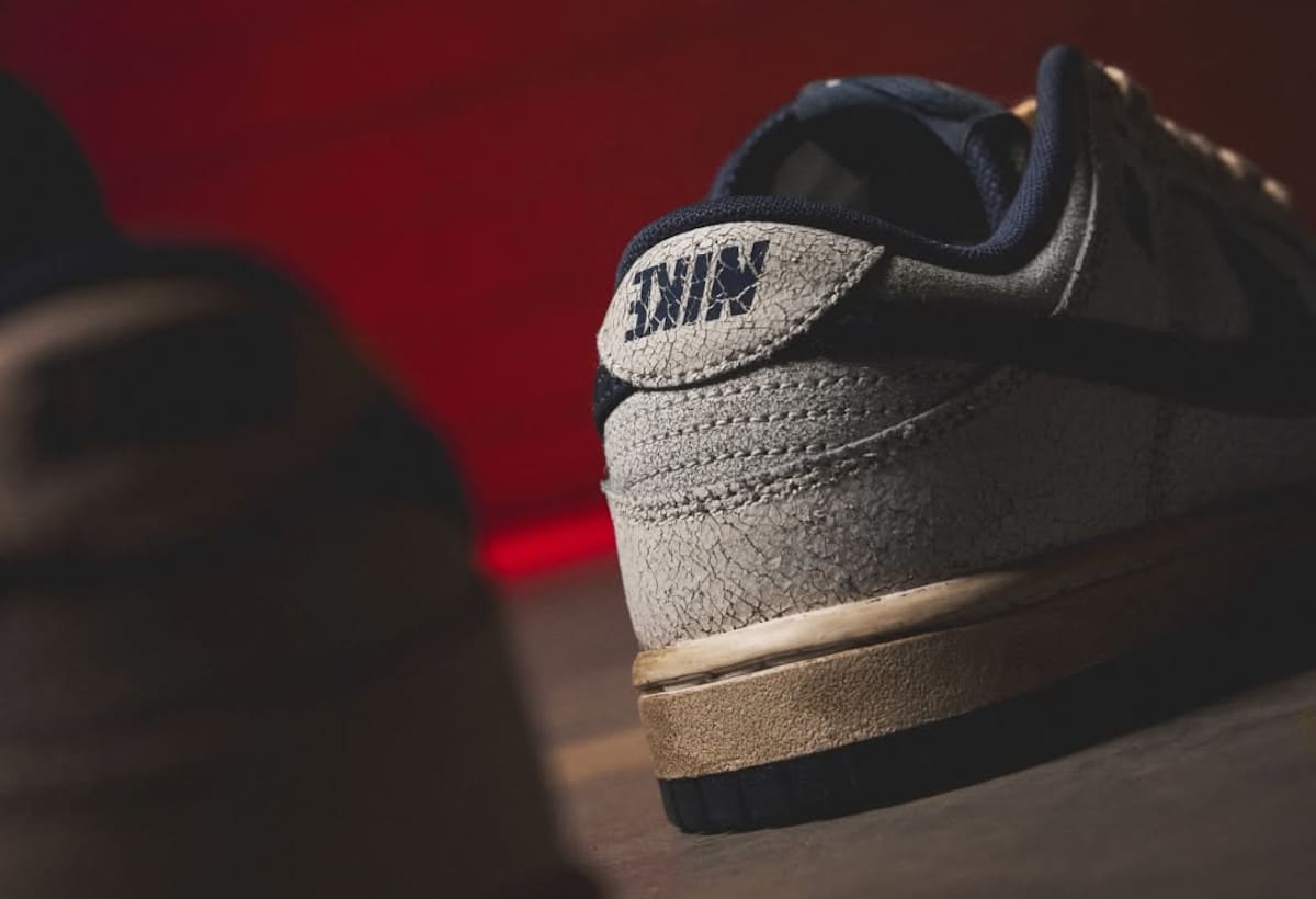 Cette Nike Dunk Low x Stranger Things Phantom and Midnight Navy (prévue pour le jeudi 6 novembre 2025), c’est du Nike qui joue la carte nostalgie à fond. Le cuir craquelé façon modèle deadstock des années 80, la semelle jaunie pour un effet vintage, les lacets tachés. Tout est pensé pour faire croire que la paire a vraiment traversé l’Upside Down.