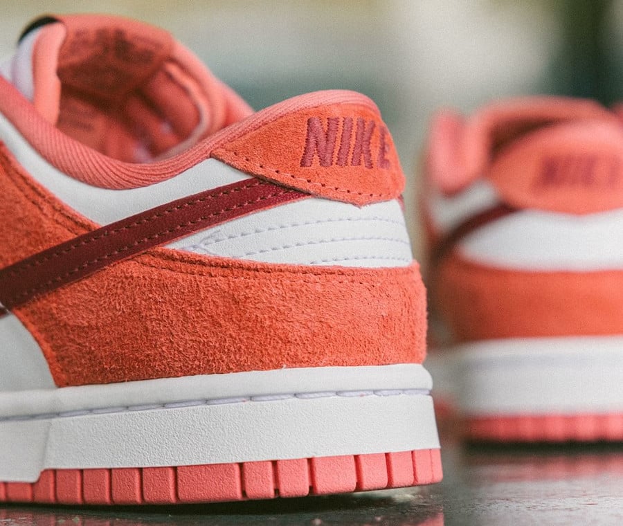 Pour représenter au mieux l’esprit de la Saint-Valentin, la Nike Dunk Low Valentine’s Day 2024 a été confectionnée avec des matériaux de qualité et des coloris parfaitement harmonieux. Le daim rouge pastel, symbole de l’amour, est associé à du cuir blanc, pour un contraste doux et subtil. Le Swoosh, quant à lui, se pare d’une teinte bordeaux qui ajoute une touche de chic et d’originalité.