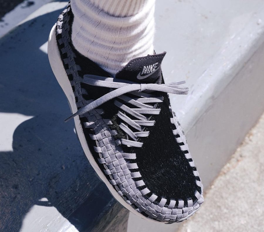 Une nouvelle Nike Air Footscape Woven 2023 moins spectaculaire que la Cow Print ? C’est la première impression qui se dégage de la Black Smoke Grey. Le second coloris du modèle développé par le NSRL a l’avantage d’être mieux accordé à la saison en cours. Les tiges tissées grises et la fourrure noire (crin de cheval) forment un ensemble sobre. Vous pourrez la porter durant tout cet automne sans craindre les salissures. On ne peut pas en dire autant de la Nike Footscape Pony Hair Natural Brown, déjà en promo chez certains revendeurs.