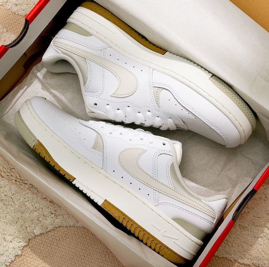 Le catalogue Nike Lifestyle 2023 est assez pauvre en nouveautés. Forcément lorsqu’une silhouette inédite se pointe, elle passe difficilement inaperçue. C’est le cas de la Nike Gamma Force, une sneaker au style rétro destinée aux femmes. Puiser dans les archives dans l’optique de produire un nouveau modèle, telle fut la démarche de son designer, David Mawdsley. Ses influences sautent aux yeux, la Air Force 1 en premier lieu. Vous remarquerez que sa semelle est plus grosse sans être aussi épaisse que celle d’une AF1 plateforme. Il y a un peu de Nike Court Force dans sa partie supérieure. Bref, vous l’aurez compris. Nous sommes face à une chaussure basse qui sent bon la Nike basketball des années 1980. Signalons le tarif qui la rend davantage accessible que sa rivale, la New Balance 550.