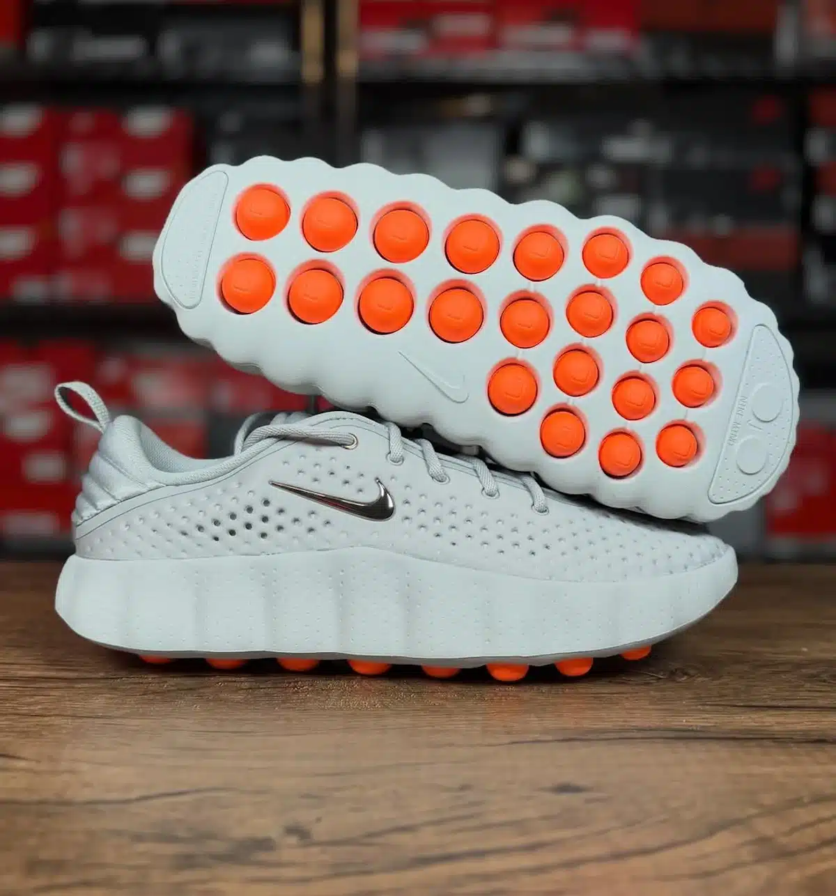 Des boules oranges sous la semelle ? Au départ, tu trouves la silhouette un peu chelou. Ça ressemble à un prototype mal digéré. Tout ce qu’on déteste d’habitude. Mais attends deux secondes avant de la classer dans la catégorie « erreurs monumentales de Nike ».
