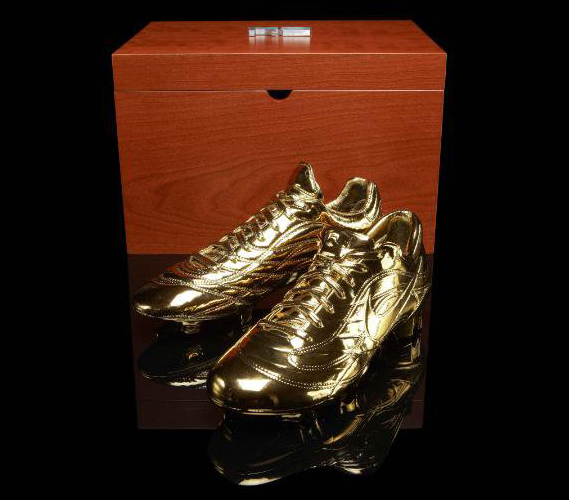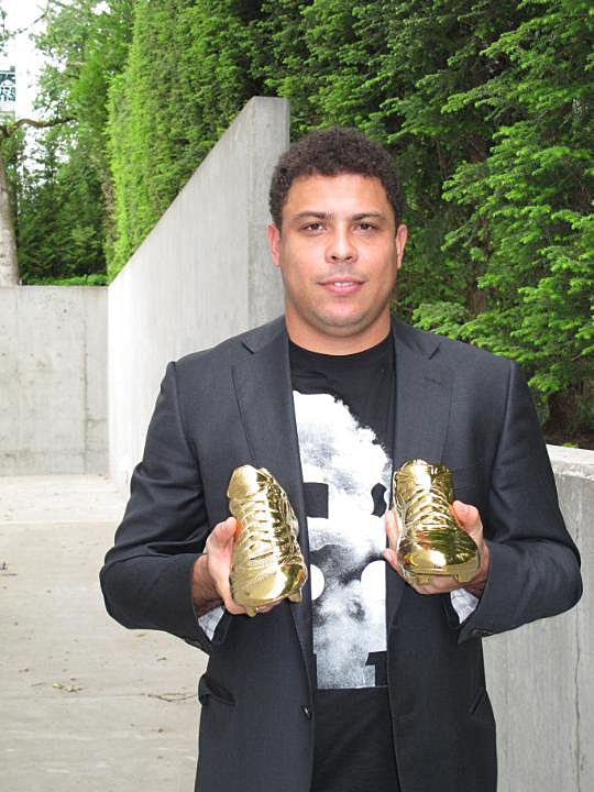 Une paire en or pour un joueur en or ! Ronaldo (Luis Nazario de Lima) est sans conteste l’un des meilleurs footballeurs de tous les temps. Une technique hors du commun, un dribble déroutant, une accélération fulgurante, un sens du but exceptionnel ( un attaquant perd 7 fois sur 10 son face à face contre un gardien alors que pour Ronaldo, c’est l’inverse !). Nike a décidé de rendre un bel hommage a Il Fenomeno (il a pris sa retraite depuis quelques semaines) en lui offrant une paire de crampons de Nike Mercurial en or ! La boîte customisée avec l’emblème « R9 » , est la cerise sur le gâteau. L’attaquant brésilien l’a bien mérité !