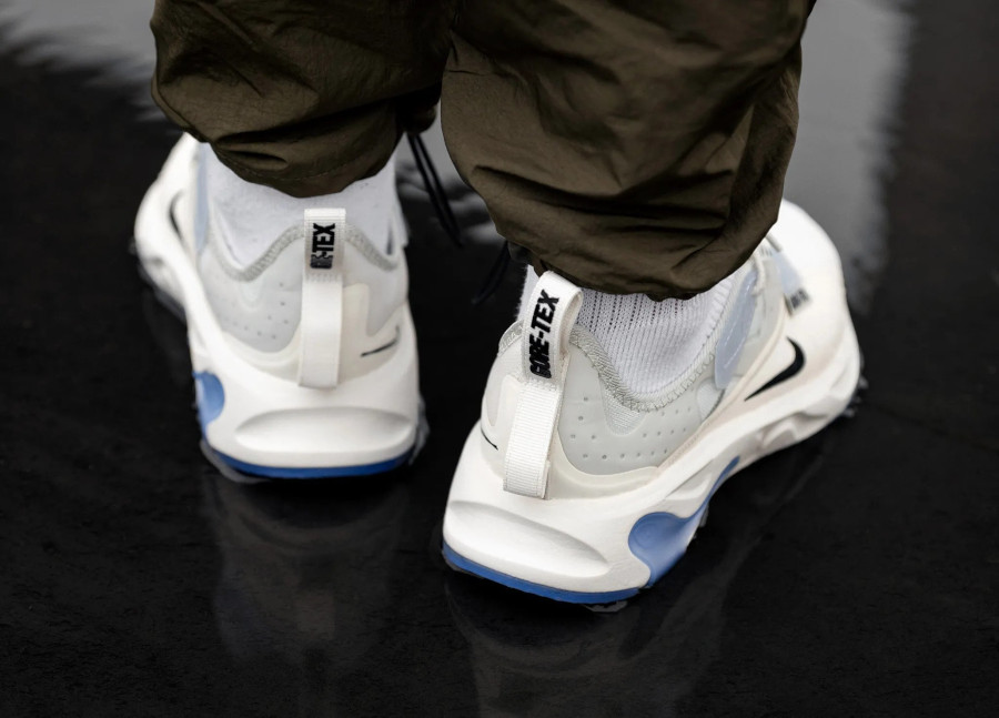 La série Nike N.354 prend du galon. La gamme déjà composée des Nike Drop Type LX, Huarache et Air Force 1 Low, souhaite la bienvenue à la Nike React Type. La chaussure est tout de même plus proche d’une Sertu en raison de sa semelle en mousse dynamique et de son shape. A l’instar des Af1 sorties début novembre, une membrane Gore Tex lui sert de peau. Ainsi, la nouveauté cumule 2 avantages, le confort et l’imperméabilité. Rien ne dit qu’à l’avenir elle ne sera pas disponible dans des matériaux plus classiques.