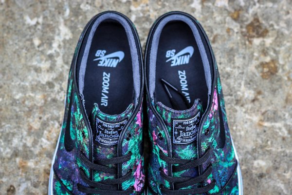 La Nike SB Stefan Janoski Gorge Green est la digne successeur de l’édition Black Floral (2013). Elle dispose d’une empeigne en toile intégralement couverte par des feuilles de palmier. Une belle sneaker avec imprimé exotique en complément des Nike Aloha et Hyperfr3sh Palm Tree QS.