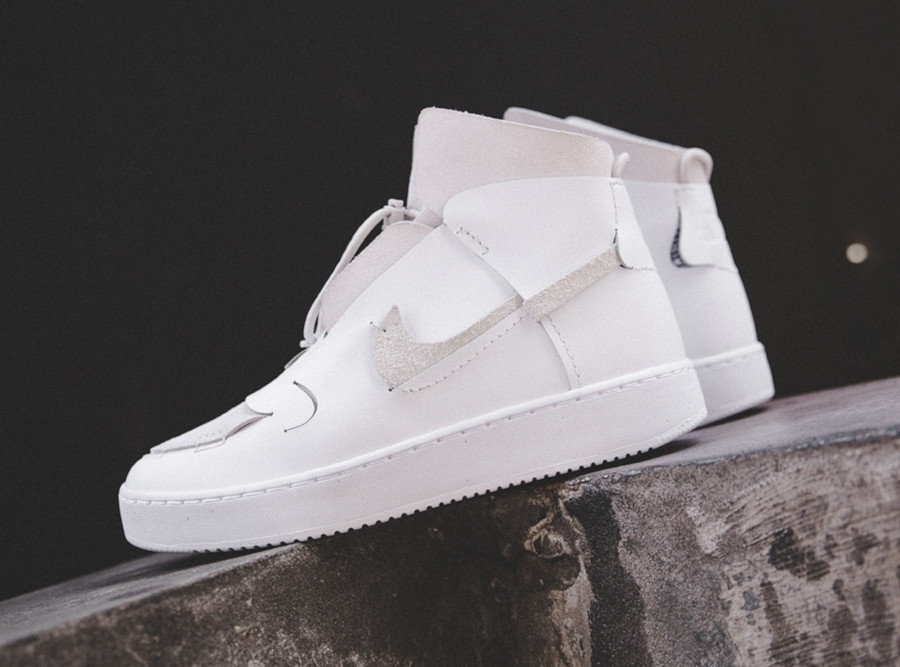 Une autre Air Force 1 Deconstructed ? Avouez que vous êtes tombés dans le panneau. A votre décharge, l’allure de la Nike Vandalised LX prête clairement à confusion. On croirait voir une AF1 style PSNY. En réalité, la basket montante est une Nike Vandal destructurée. Le modèle de 1984 détonne grâce à un look asymétrique. Un nouvel esthétisme qui se matérialise par un laçage avec un stoppeur, un Swoosh cassé en 2, une semelle d’usure rouge et une autre bleue. Mentionnons les coutures puis l’association de suède et de cuir premium. Vous pouvez acheter la Nike Wmns Vandalised LX White Platinum Tint au prix de 130€ au Nike Store.fr : voir la paire.