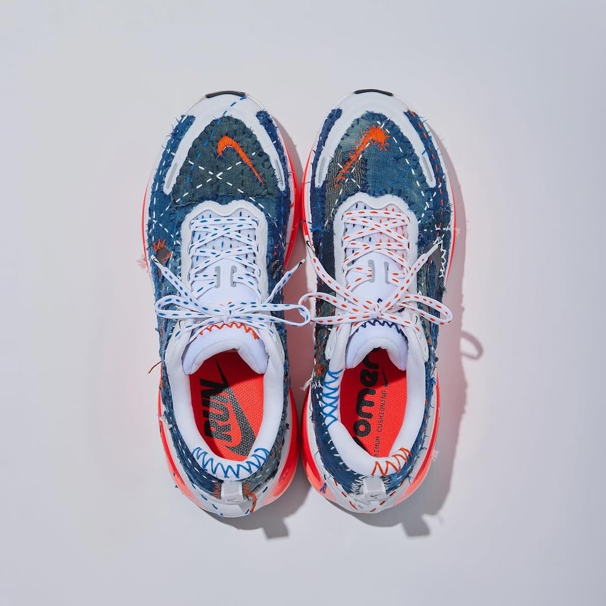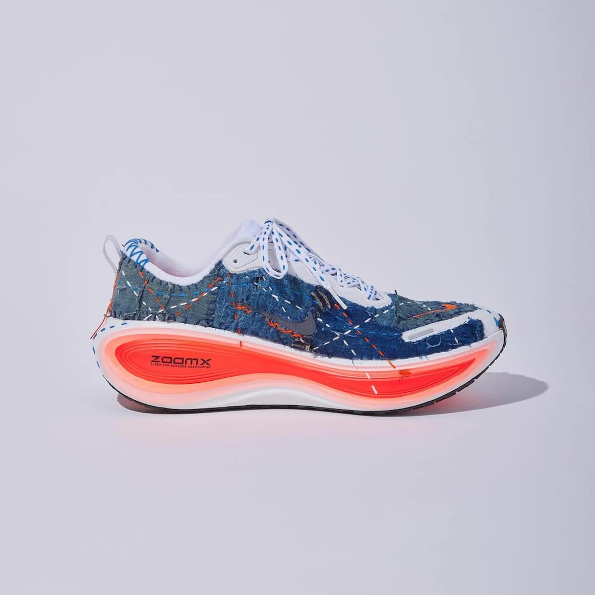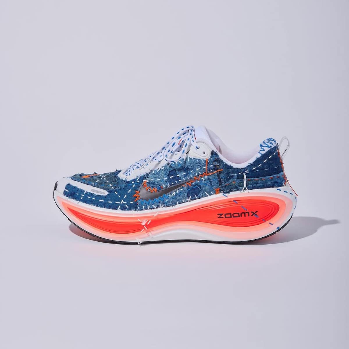 Vous connaissez la Nike Vomero 18 ? Cette running avec son amorti ZoomX x React qui encaisse les kilomètres. Eh bien, oubliez tout. L’atelier Sashiko Gals en a fait autre chose. Leur broderie japonaise ancestrale transforme la paire en objet unique. Des coutures qui courent sur du tissu indigo. Chaque point posé à la main. Un travail d’orfèvre. La sneaker performance devient artisanale. Technique et tradition fusionnent. C’est beau à regarder. Quand Virgil évoquait La Joconde pour ses Off-White x Nike, ça faisait sourire. Cette Vomero 18 ornée de broderie mérite la comparaison. Sans forcer (je déconne mais vous m’avez compris).