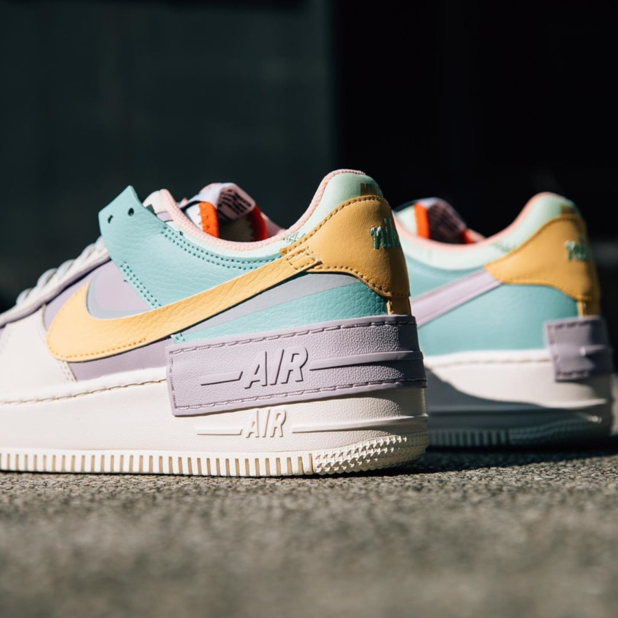La collection Fall 2019 va nous faire découvrir plusieurs nouvelles Air Force 1 créées spécialement pour les femmes. La AF1 Shadow est la première à entrer en scène. La chaussure qui double le Swoosh ainsi que plusieurs autres éléments vous sera proposée dans une multitudes de colorways. Nike a choisi la Mystic Green pour incarner sa campagne promotionnelle. Le public ne voit les choses de la même façon. La Air Force 1 Shadow Pale Ivory Celestial Gold Tropical Twist génère davantage de réactions positives. Ses couleurs pastel digne d’une édition Easter Egg ne sont pas étrangers à sa popularité. La Nike Women’s multicolore est disponible au prix de 110€ au Nike Store.fr : voir la paire.
