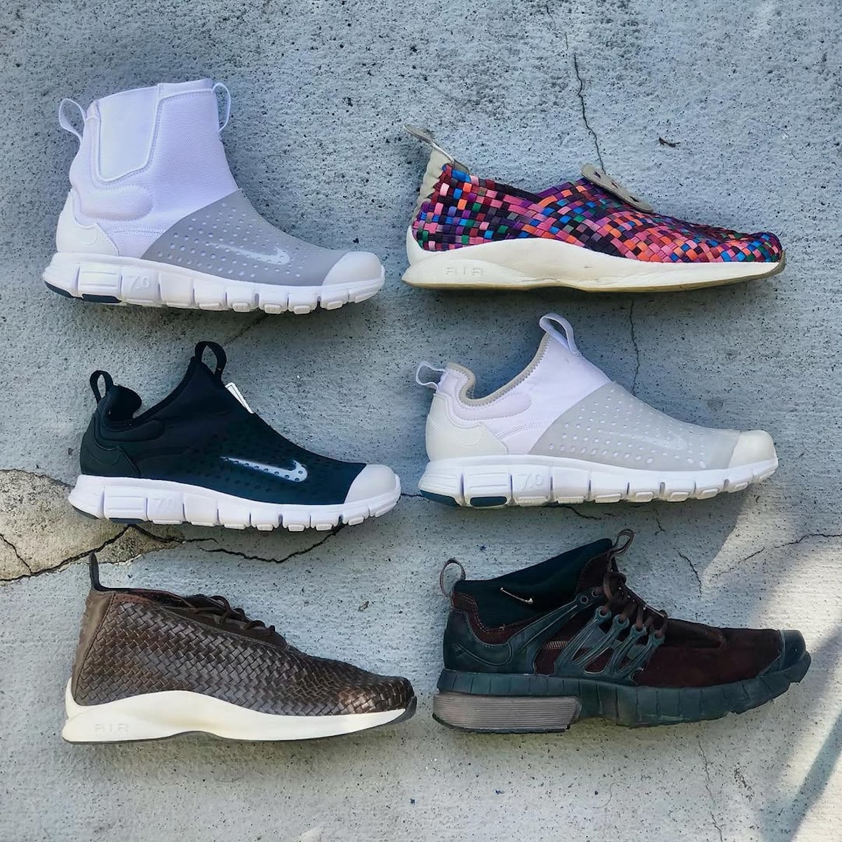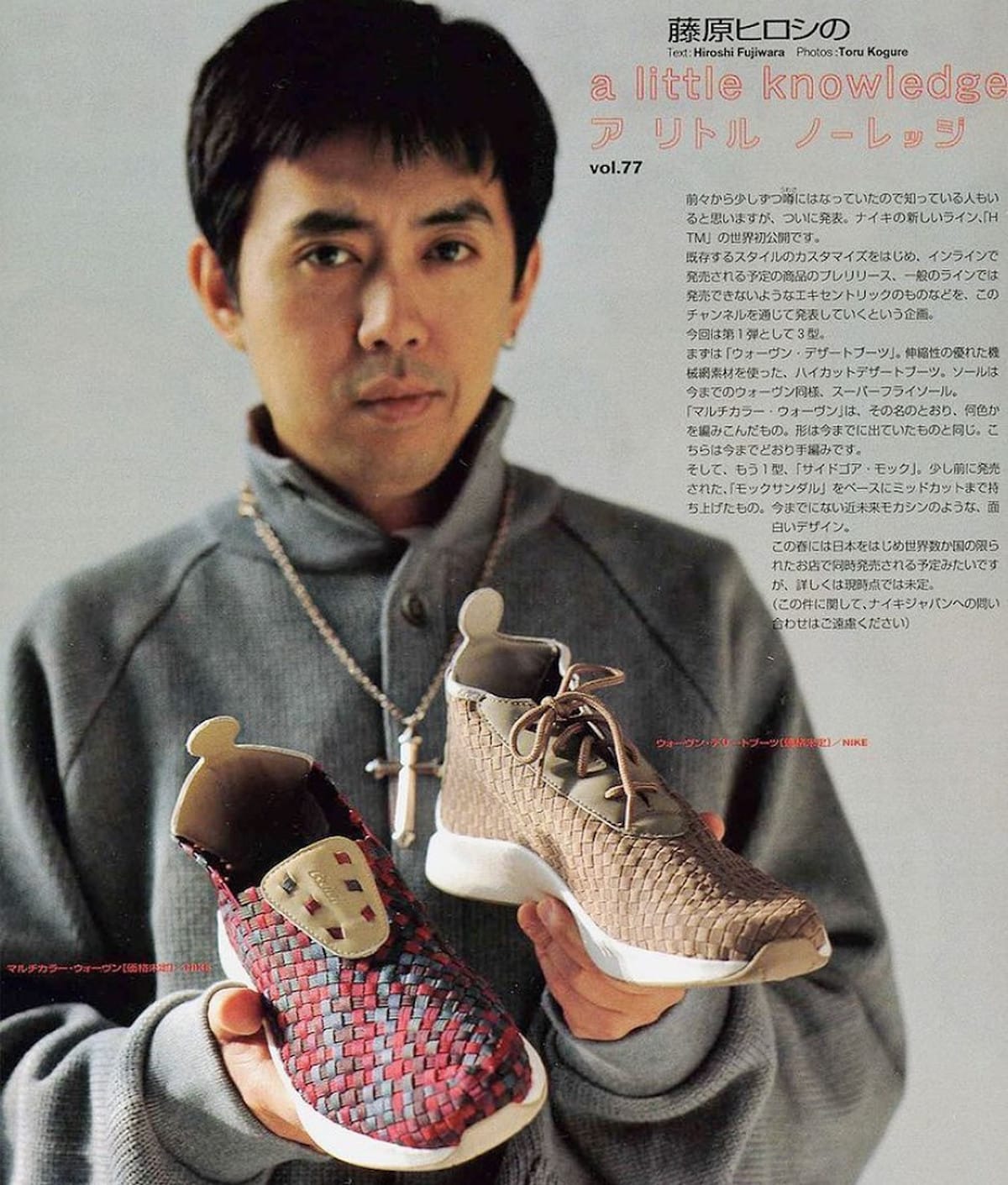 Le vrai tournant, c’est 2002. Il co-fonde HTM avec Tinker Hatfield et Mark Parker, le cerveau et le CEO de Nike. Ce n’est pas une collab de plus. Mark Parker le décrivait lui-même comme une jam session de jazz, trois musiciens qui s’improvisent mutuellement. Et ce que ce trio produit est révolutionnaire pour l’époque : ils transforment la Air Force 1 en objet de luxe, ressuscitent la Sock Dart, et surtout, ils lancent participent au lancement des Nike Flyknit en 2012. Une technologie qui allait changer l’industrie entière. Hiroshi, à ce moment-là, dépasse le statut d’un simple collaborateur. Il est un accélérateur d’innovation.