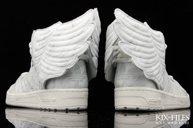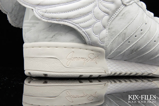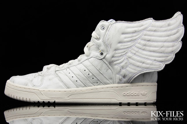 Il a encore frappé avec la Adidas JS Wings marbrée. Le cuir de la sneaker a été travaillé de manière à donner un effet de marbre. La Adidas JS Wings marbrée marbrée utilise une matière réléchissante (3 M). La sneaker est d’ores et déjà disponible chez Kix Files pour 315 dollars. Mr Scott nous offre un véritable cadeau avec ce petit bijou.