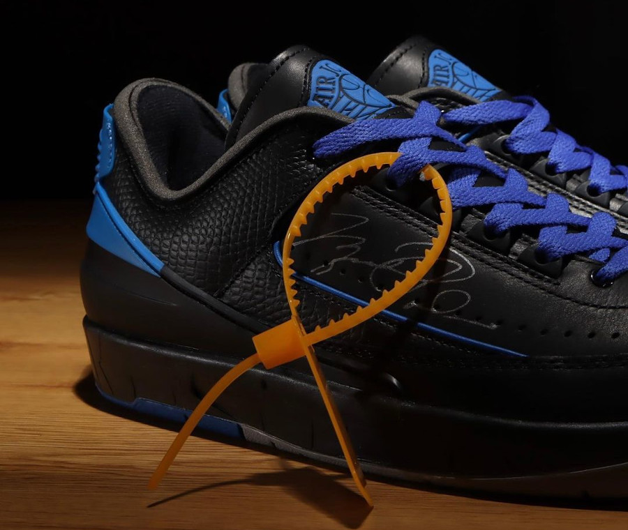 D’habitude, la Jordan II Low intéresse essentiellement les adeptes du modèle de 1986. Grâce à la collaboration avec Virgil Abloh, les projecteurs sont braqués vers la basket basse. Le designer a mis le paquet. Pour créer la Off White™️ x Air Jordan 2 Retro Low SP Black Varsity Royal, il a scanné une chaussure archivée. Ce procédé a permis de réaliser 2 semelles craquelées différentes. Un concept emprunté à la Maison Margiela Mid-High 35mm ? Un simple retour à l’envoyeur dirons nous. La midsole étant noire, les fissures sont moins visibles que sur celle d’une AJ2 Low Chicago. Le logo Wings bleu, les lacets violets et le colson jaune, la rendent davantage contrastée. Dommage que la signature de MJ soit en caractères gris. Cela atténue son impact.